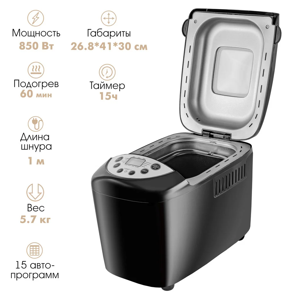 Одной из ключевых особенностей этой модели является наличие 15 различных автоматических программ, которые позволяют приготовить различные виды хлеба, сладкую и несладкую выпечку, а также замесить тесто. Программа “МУЛЬТИПЕКАРЬ” дает возможность создавать собственные рецепты и экспериментировать с выпечкой.