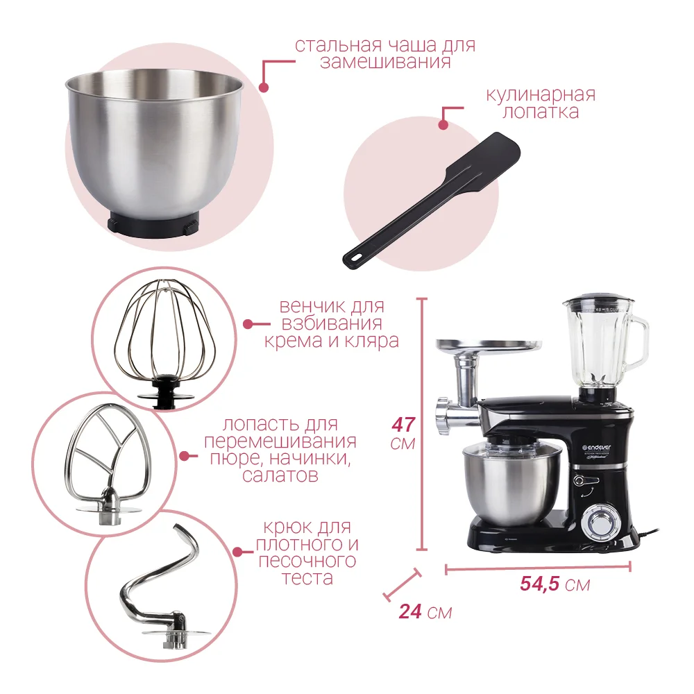 Endever Sigma-48 совмещает в себе сразу несколько самых популярных устройств кухонной техники: миксер, мясорубку и блендер, что значительно экономит место на кухне!
