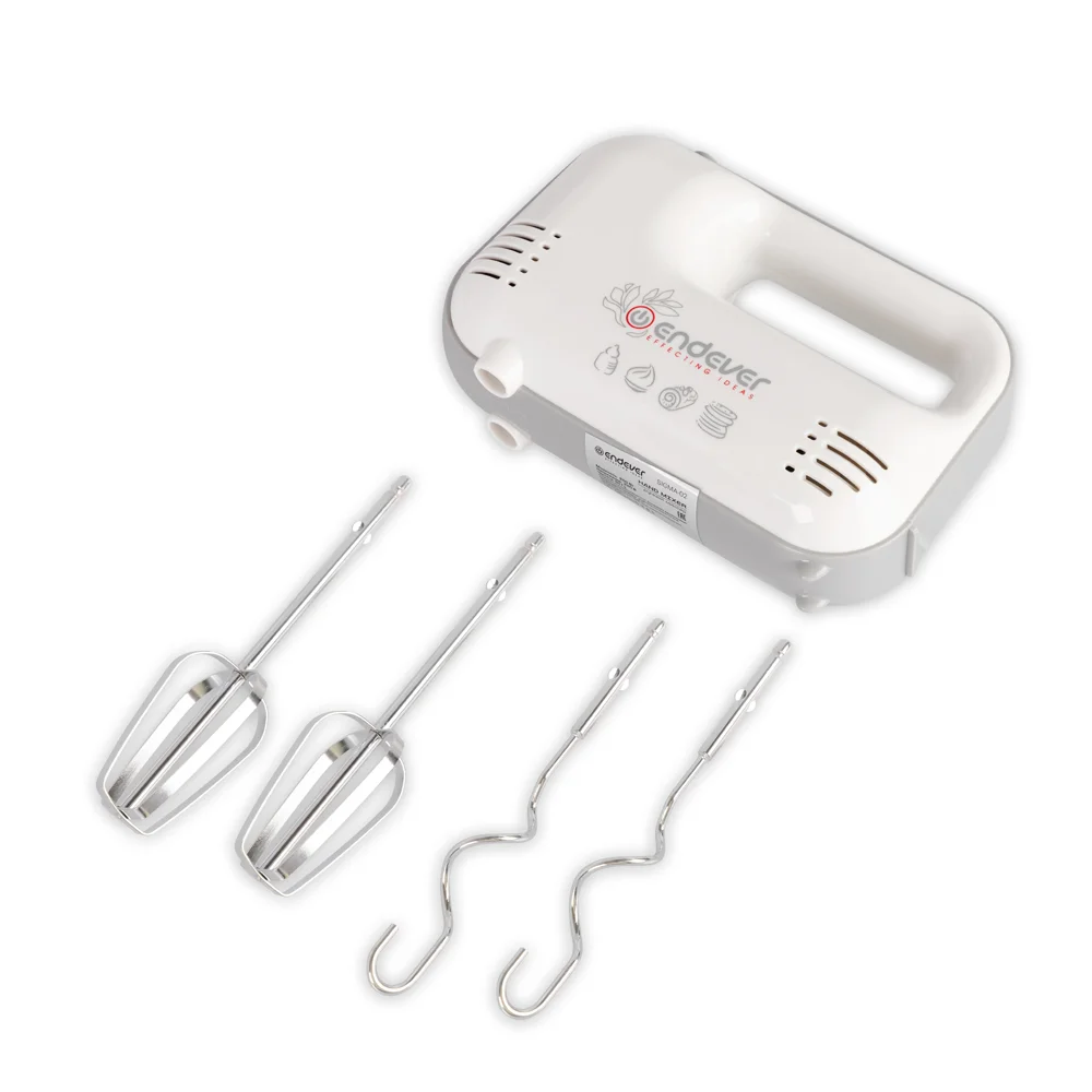Ручной миксер Endever Sigma-02 имеет двигатель мощностью 250 Ватт и 3 скорости смешивания, благодаря чему вы сможете выбрать подходящую скорость для взбивания или смешивания ингредиентов. Сухие продукты советуем смешивать на низкой скорости, на высоких оборотах все ингредиенты будут разлетаться, а вот яичный белок и другие жидкие продукты рекомендуем смешивать на высоких скоростях, на низких оборотах они будут перемешиваться недостаточно тщательно.