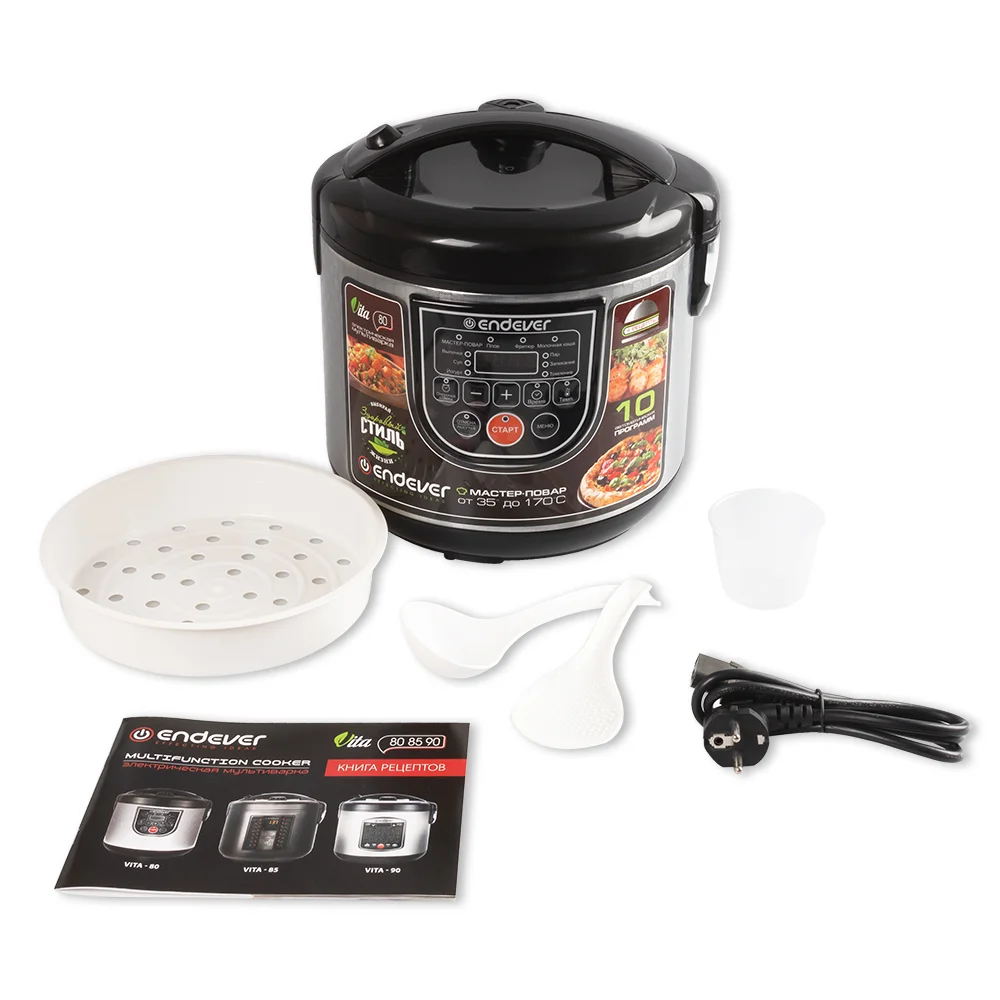 Мультиварка, Съемный каплесборник для конденсата, Съемная кастрюля, Контейнер-пароварка, Черпак для супа, Ложка для крупы, Мерный стакан, Держатель для ложки, Клапан выпуска пара, Шнур питания, Руководство по эксплуатации, Гарантийный талон |
