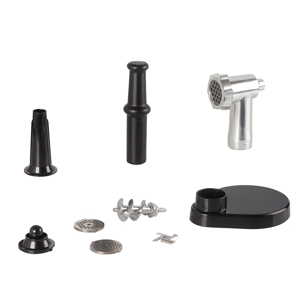 | Комплект поставки | Мясорубка, Кованый стальной нож, 2 решетки: с отверстиями 5 мм/7 мм, Толкатель, Насадки для приготовления колбас, Инструкция по эксплуатации, Гарантийный талон |