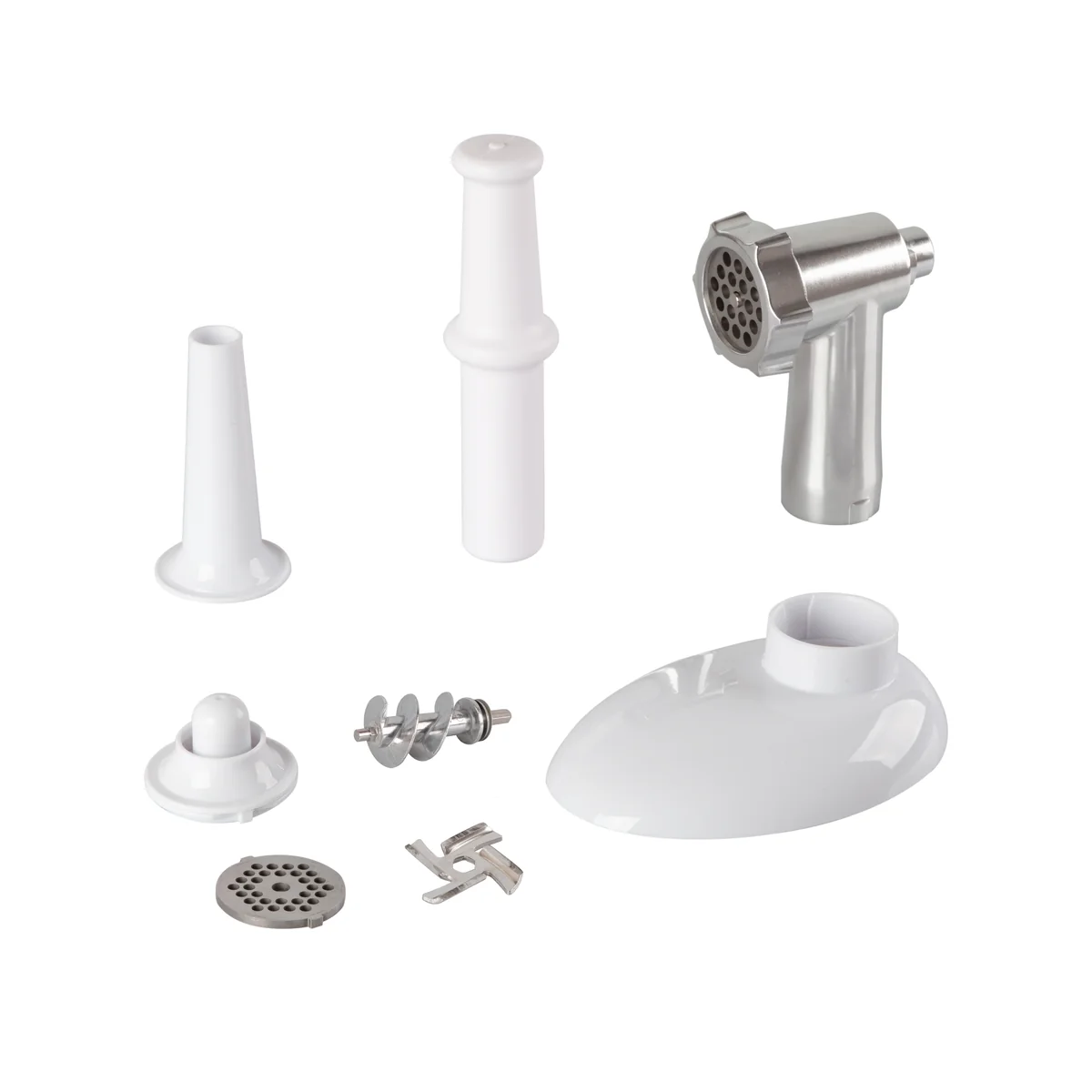 Две металлических решетки с отверстиями 5 мм и 7 мм позволят сделать и нежнейшие фрикадельки, и котлеты, и многие другие блюда. Также данная модель укомплектована насадками для колбас и кеббе, что поможет порадовать вашу семью и гостей разнообразными блюдами.