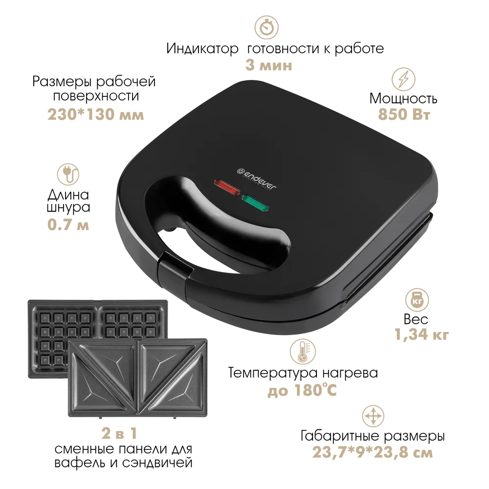 Представляем вам уникальную сэндвичницу Endever Skyline SM-30, которая станет незаменимым помощником на вашей кухне! Благодаря мощности 850 Вт и функции 2 в 1 вы сможете наслаждаться не только вкусными и хрустящими сэндвичами, но и аппетитными вафлями.