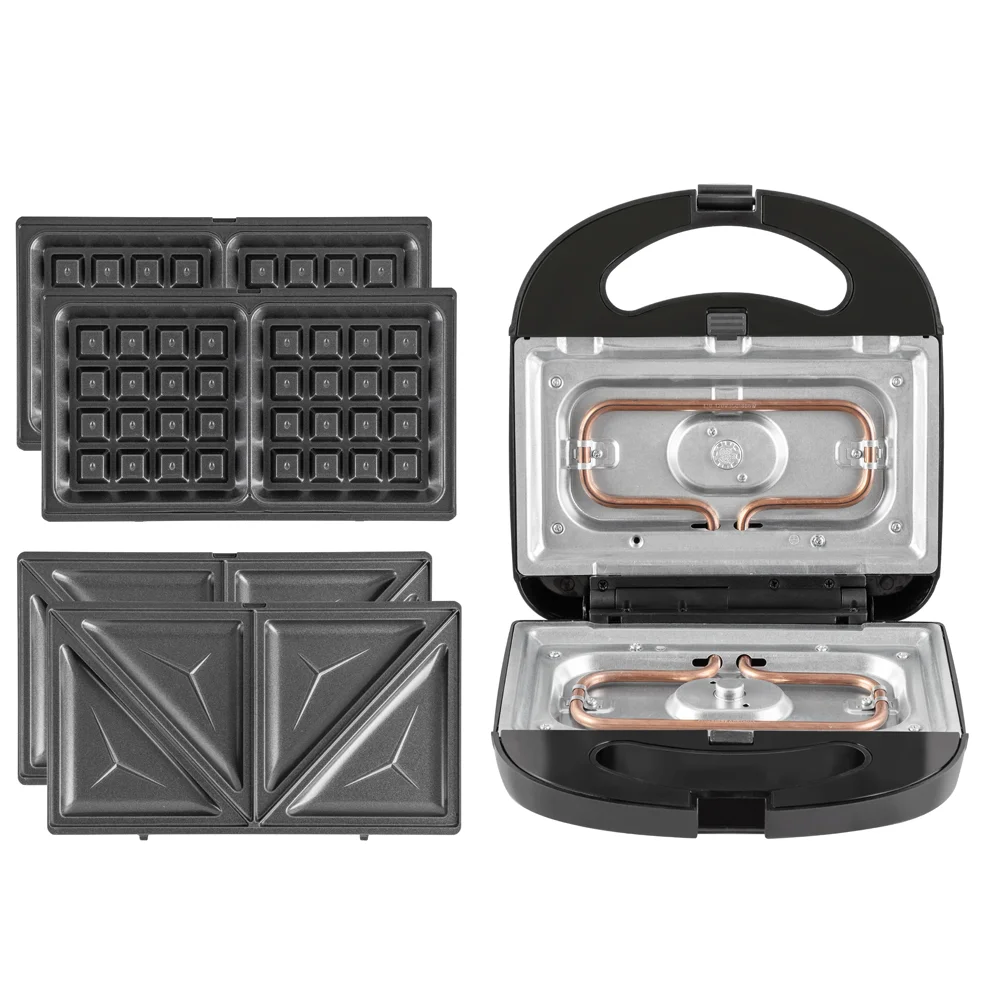 Благодаря наличию двух панелей в комплекте, вы сможете приготовить одновременно 2 вафли или 4 сэндвича, экономя таким образом ваше время и упрощая процесс приготовления завтрака или перекуса. Корпус из термостойкого биопластика обеспечивает надежность и долговечность устройства.