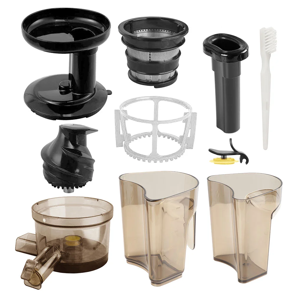 Соковыжималка, Загрузочный лоток, Чаша, Мелкоячеистый фильтр из стали, Резервуар для сока и мякоти - 2 шт., Шнек, Вращающаяся щетка, Заглушка на выходное отверстие, Чистящая щетка, Толкатель, Гарантийный талон, Список сервисных центров, Инструкция по эксплуатации |