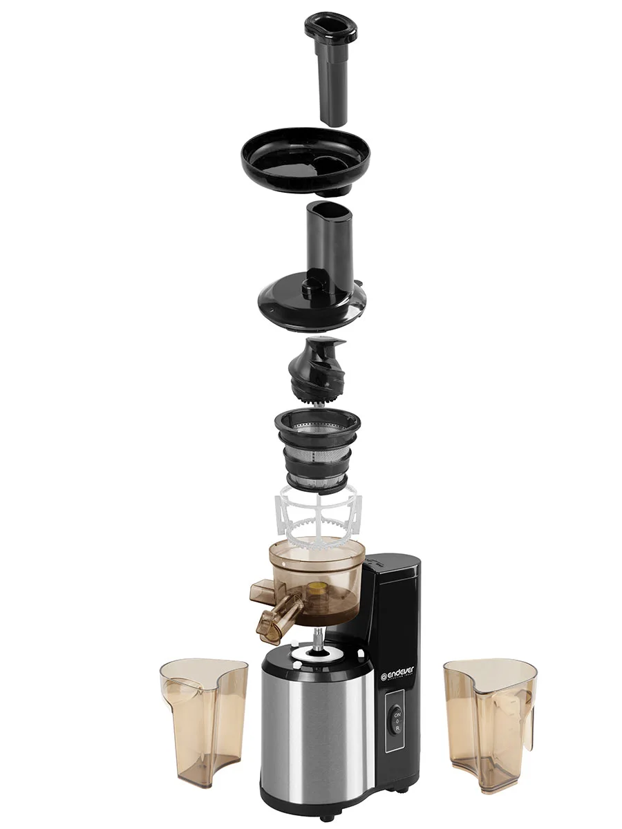 В комплект шнековой соковыжималки ENDEVER SIGMA-95 также входят 2 резервуара для сбора готового сока и мякоти объемом 1 л. и 0,8 л.