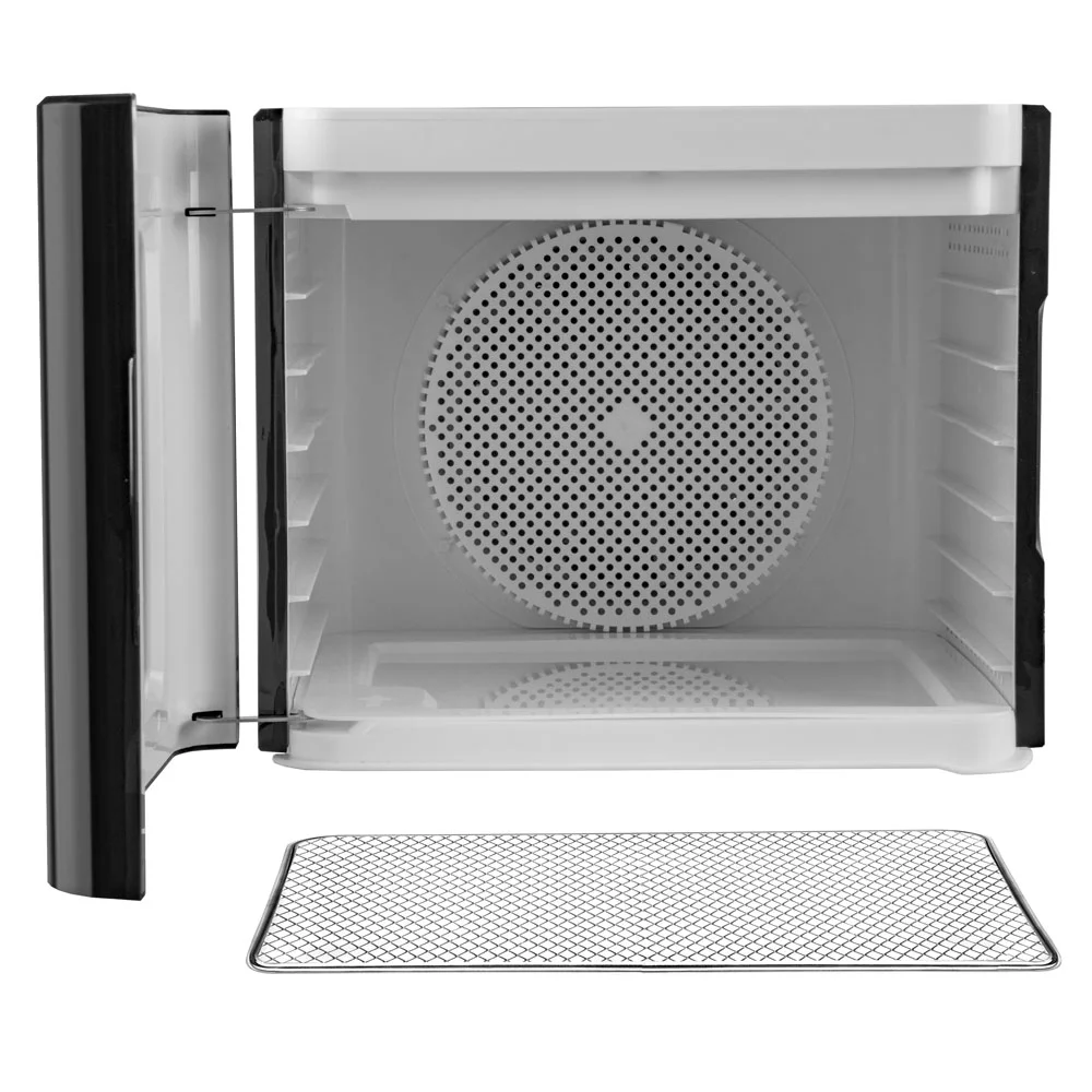Прозрачное окно сушилки позволяют вам наблюдать за процессом сушки, а система циркуляции горячего воздуха обеспечивает равномерное и быстрое высушивание продуктов.