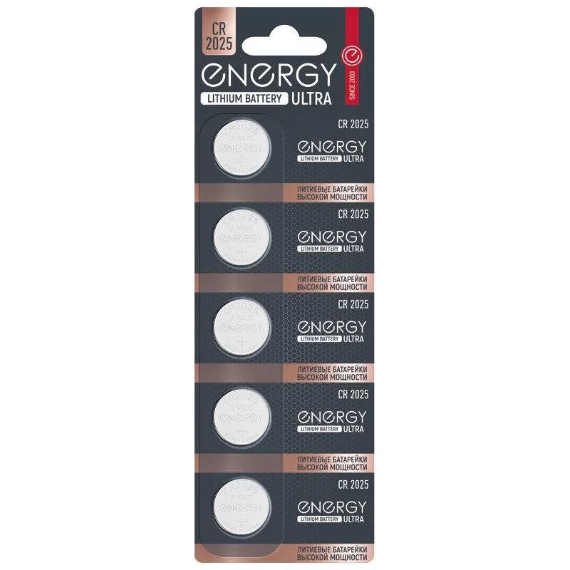 Батарейка литиевая Energy CR2025/5B Типоразмер - CR2025 Серия Ultra Мембранная защита от протечек Стальной корпус Срок предэксплуатационного хранения - 5 лет