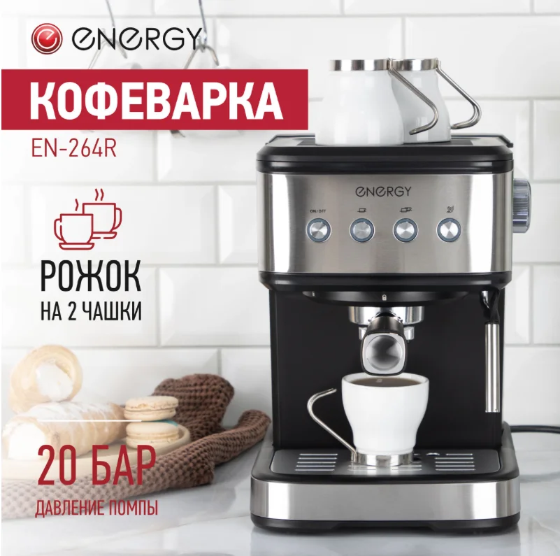 Кофеварка Energy EN-264R. 1100 Вт, 1,5 л, 20 бар 108170-SK