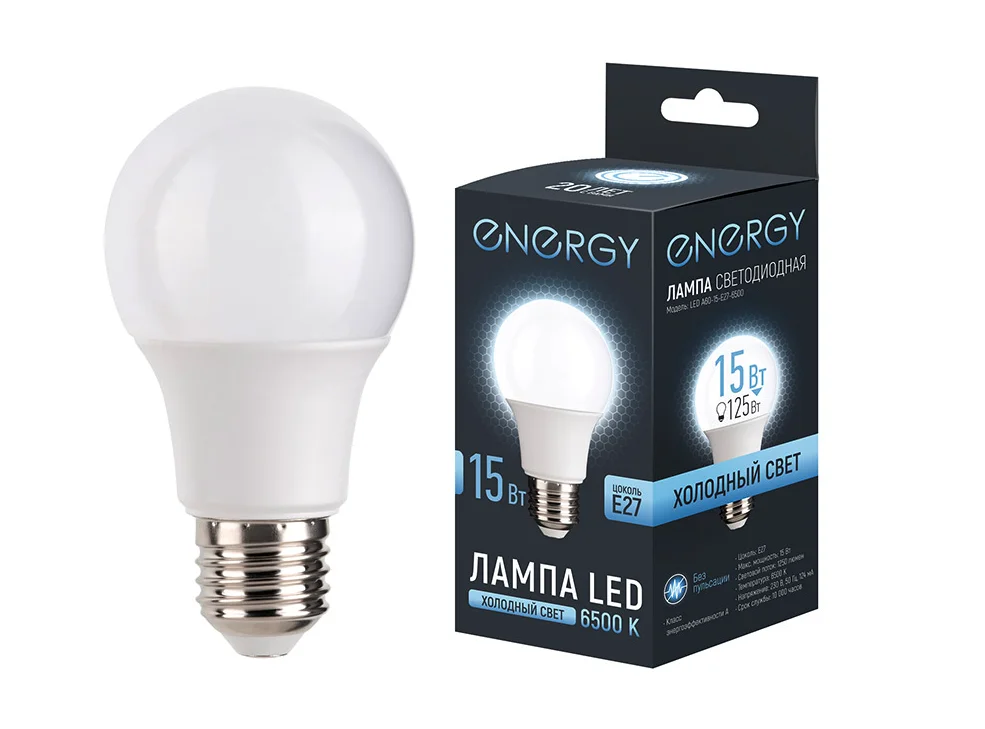 - Лампа светодиодная Energy LED А60-15-E27-6500