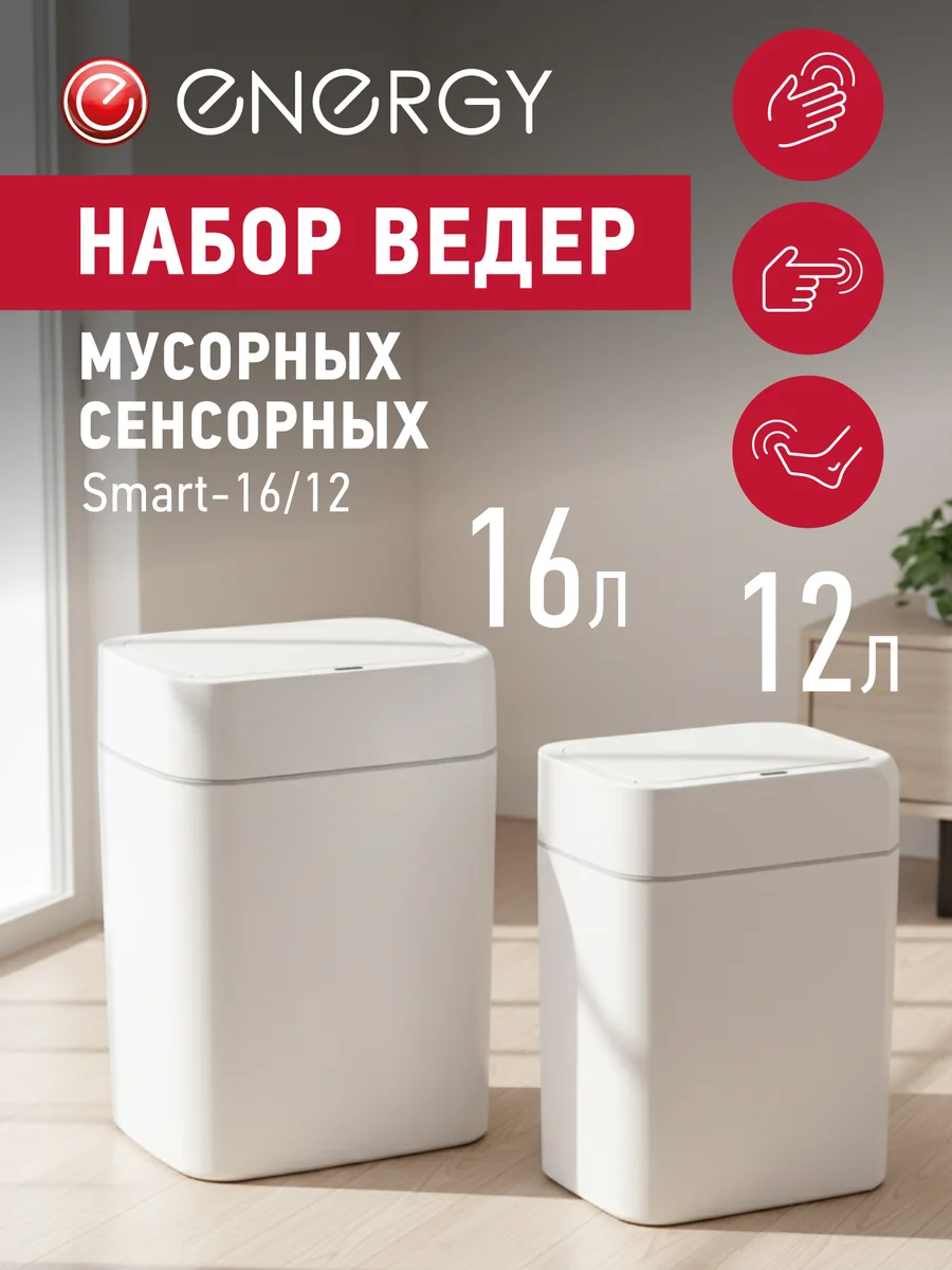 Набор сенсорных мусорных ведер Energy Smart 16/12 белый 111282-SK