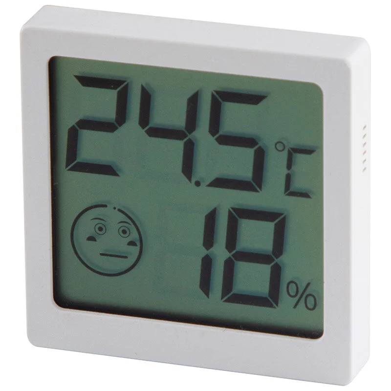 Электронный термометр-гигрометр 2 показателя Показатель 1: t в помещении °C Показатель 2: относительная влажность % Диапазон измерения t: от -50°С до +70°С Погрешность: +/- 1° Цена деления: 0,1°С Диапозон измерения относительной влажности: 10%-99% Точность измерения влажности: ± 5% относительной влажности Работа от батарейки 3V CR2032 (входит в комплект) Возможно крепление настенное (двусторонний скотч в комплекте), на холодильник (встроеный магнит) или настольная установка Упаковка: блистер