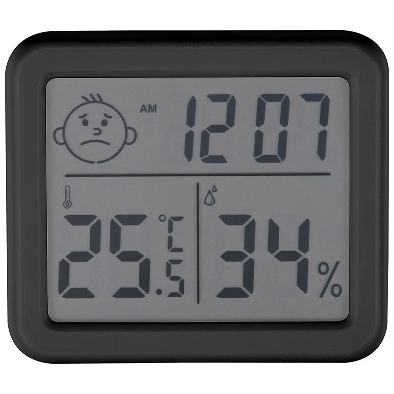 Мощность 3 Вт Измерение температуры и влажности в помещении, отображение времени, индикатор комфорта(эмодзи) Питание от 1 батарейки типа CR2032 (3В) входит в комплект 3 показателя Показатель 1: время(12/24) Показатель 2: t в помещении °C/°F Показатель 3: относительная влажность % Диапазон измерения t: от -15°C до +70°C Погрешность +/-1°C Цена деления 0,1°C Диапазон влажности: 10%-99% Диапазон измерения относительной влажности 10%-99% Точность измерения влажности:±5%% относительной влажности Размещение: -настольное(складная подставка) -настенное (отверстие для подвешивания, двухсторонний скотч) Состав: пластмасса. металл Напряжение 3 Вт Размеры продукта: 80 x 70 x 10 мм, размер LCD экрана 63*51, вес 57 г