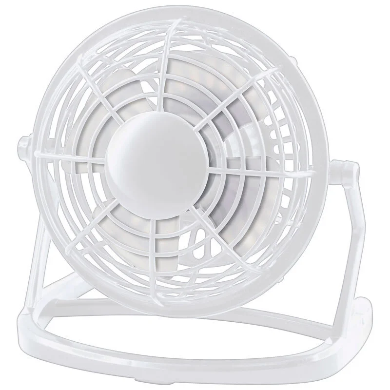 USB вентилятор Размеры: 15*9,8*15 см Регулировка наклона 1 скорость Мощность 2,5Вт Корпус из пластика Длина шнура 1,1 м 1 шт в коробке Цвет белый