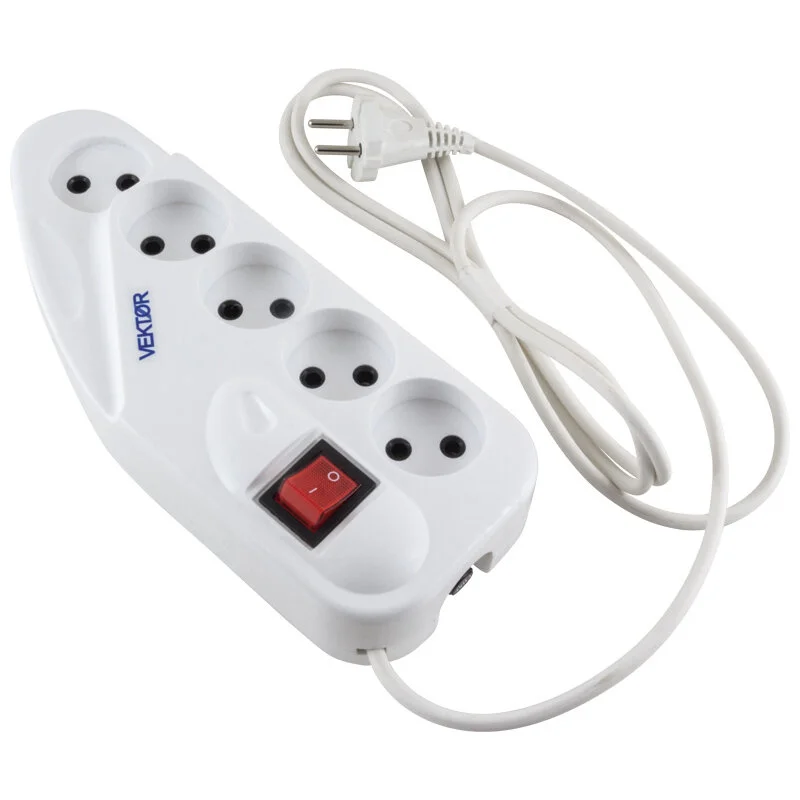 Назначение: для защиты эл. приборов от скачков напряжения в сети. Номинальное напряжение: 220 B Суммарная номинальная мощность нагрузки: 2,2 кВт Номинальный ток нагрузки: 10 А Максимальный ток помехи, поглощаемый ограничителем 4500 А Максимальная рассеиваемая энергия: 150 Дж Степень подавления высокочастотных помех, на частотах 1Мгц: 10Дб Ослабление импульсных помех: да Защита от короткого замыкания: да Защита от превышения максимально допустимого тока: да Количество розеток: 5 шт. Предохранитель: плавкий предохранитель Выключатель: однополюсный, совмещённый, со светодиодной индикацией Корпус из нетоксичного и негорючего пластика Гарантия 3 года Сделано в России Длина шнура: 3 м Размеры: 250*100*70 мм Цвет корпуса: белый