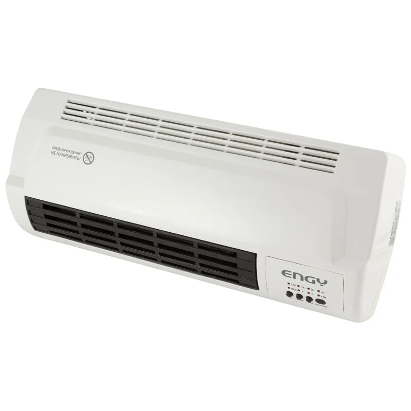 Мощность 2000 Вт Керамический нагревательный элемент Современный дизайн 3 режима работы (вентиляция без обогрева, обогрев 1000 Вт, обогрев 2000 Вт) LED индикация режимов работы Настенное размещение Размеры тепловентилятора (В*Ш*Г) 11*45*18,5 см Панель управления на корпусе тепловентилятора Пульт дистанционного управления Защита от перегрева Таймер на 7,5 часов Класс электрозащиты II Гарантия 12 месяцев Напряжение 220-240В 50Гц