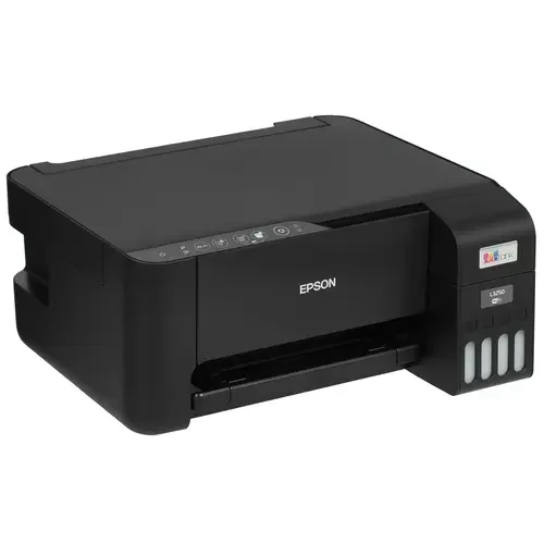 В Epson L3250 реализован модуль Wi-Fi для беспроводной синхронизации и удаленного управления через приложение Epson Smart Panel. На корпусе расположена кнопочная панель с обозначениями и индикаторами. Технология Heat-Free гарантирует экономичное потребление энергии и возможность питания от ИБП.