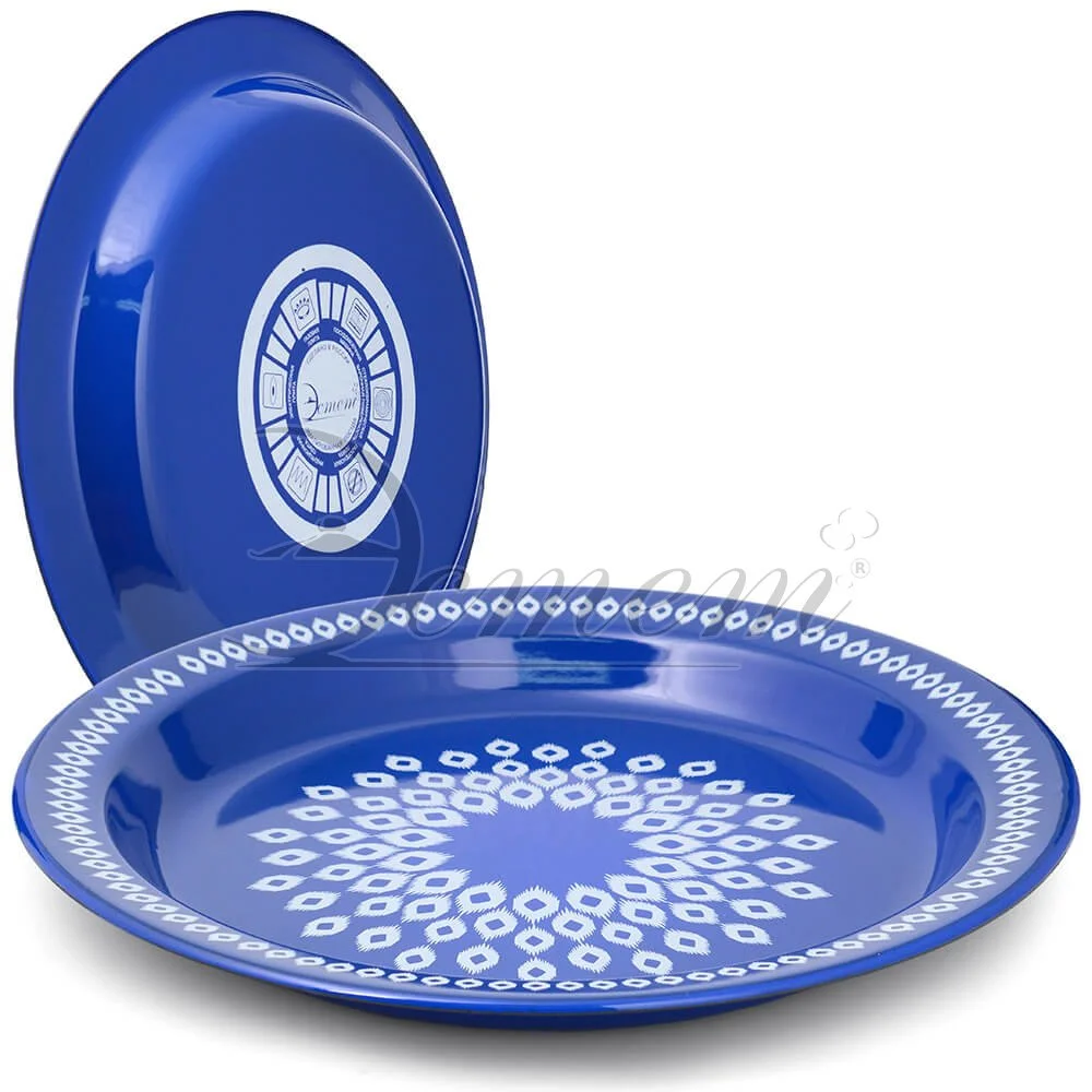 Оригинальное блюдо, изготовленное из эмалированной, прекрасно подойдет для подачи нарезок, закусок и других блюд. Блюдо декорировано красивым узором. Оно украсит ваш кухонный стол, а также станет замечательным подарком к любому празднику.