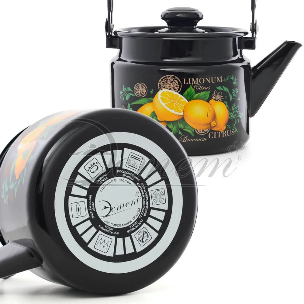 Чайник Эстет изготовлен из высококачественного стального проката и покрыта стеклокерамической эмалью. Внутри и снаружи - трехслойное глянцевое эмалированное покрытие. Эмалевое покрытие, являясь стекольной массой, не вызывает аллергию и надежно защищает пищу от контакта с металлом. Кроме того, такое покрытие долговечно, оно устойчиво к механическому воздействию, не царапается и не "сходит", а стальная основа практически не подвержена механической деформации, благодаря чему срок эксплуатации увеличивается. Крышка с эмалированным покрытием оснащена удобной ручкой. Подходит для всех типов плит, включая индукционные. Можно мыть в посудомоечной машине.