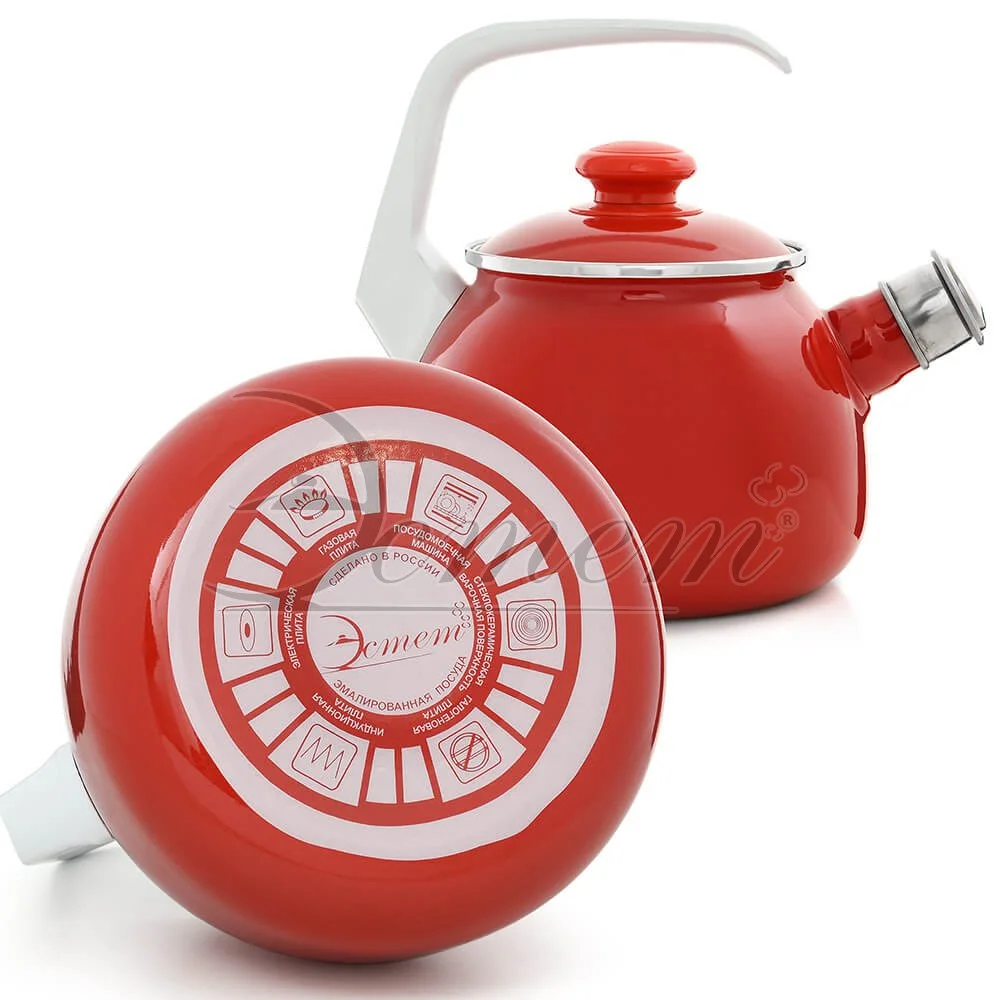 Чайник Эстет изготовлен из высококачественного стального проката и покрыта стеклокерамической эмалью. Внутри и снаружи - трехслойное глянцевое эмалированное покрытие. Эмалевое покрытие, являясь стекольной массой, не вызывает аллергию и надежно защищает пищу от контакта с металлом. Кроме того, такое покрытие долговечно, оно устойчиво к механическому воздействию, не царапается и не "сходит", а стальная основа практически не подвержена механической деформации, благодаря чему срок эксплуатации увеличивается. Крышка с эмалированным покрытием оснащена удобной ручкой. Подходит для всех типов плит, включая индукционные. Можно мыть в посудомоечной машине.