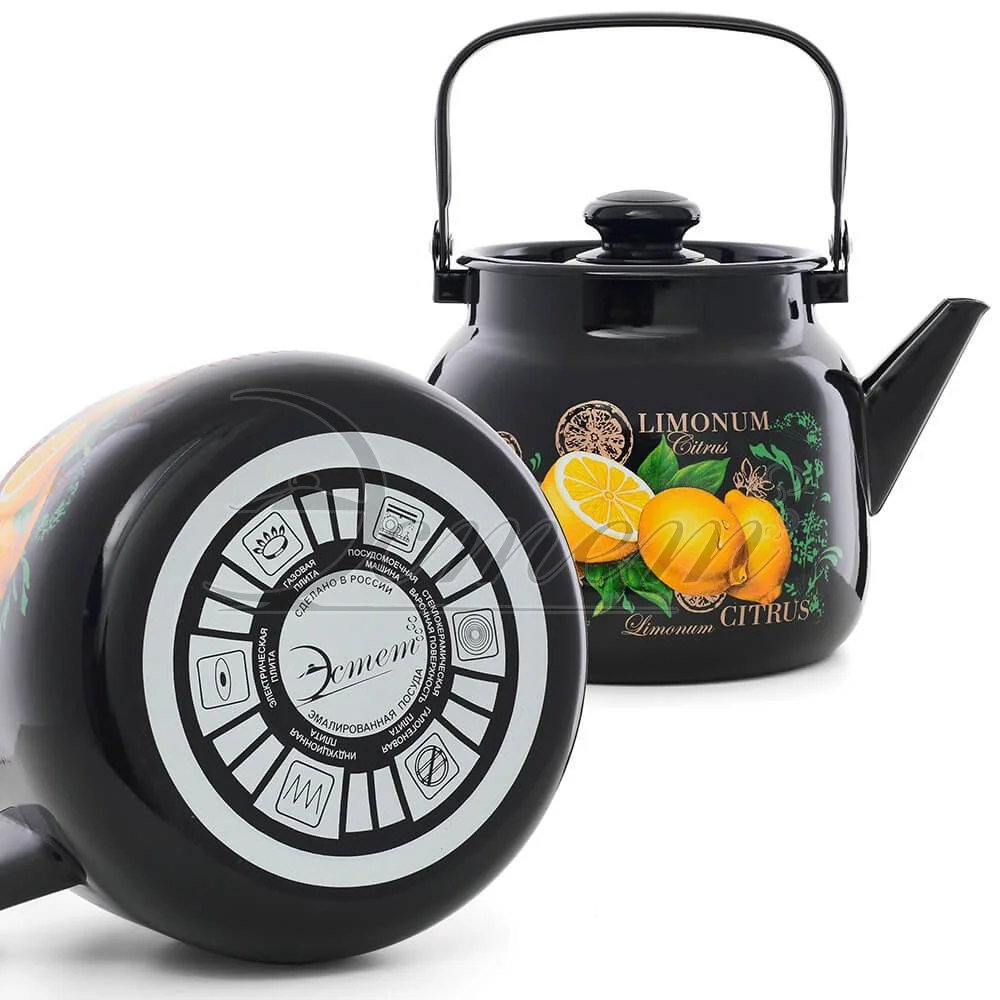 Чайник Эстет изготовлен из высококачественного стального проката и покрыта стеклокерамической эмалью. Внутри и снаружи - трехслойное глянцевое эмалированное покрытие. Эмалевое покрытие, являясь стекольной массой, не вызывает аллергию и надежно защищает пищу от контакта с металлом. Кроме того, такое покрытие долговечно, оно устойчиво к механическому воздействию, не царапается и не "сходит", а стальная основа практически не подвержена механической деформации, благодаря чему срок эксплуатации увеличивается. Крышка с эмалированным покрытием оснащена удобной ручкой. Подходит для всех типов плит, включая индукционные. Можно мыть в посудомоечной машине.