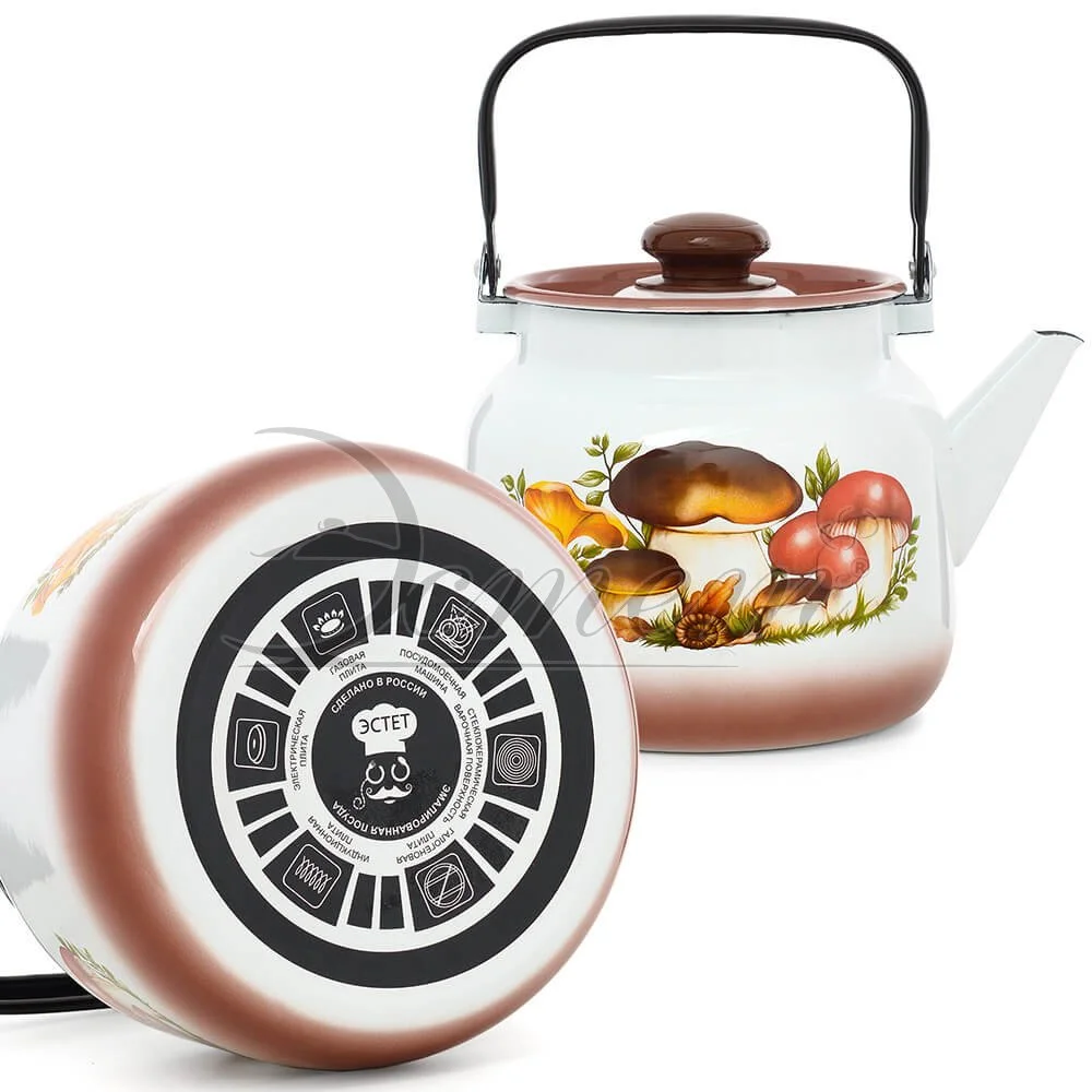 Чайник Эстет изготовлен из высококачественного стального проката и покрыта стеклокерамической эмалью. Внутри и снаружи - трехслойное глянцевое эмалированное покрытие. Эмалевое покрытие, являясь стекольной массой, не вызывает аллергию и надежно защищает пищу от контакта с металлом. Кроме того, такое покрытие долговечно, оно устойчиво к механическому воздействию, не царапается и не "сходит", а стальная основа практически не подвержена механической деформации, благодаря чему срок эксплуатации увеличивается. Крышка с эмалированным покрытием оснащена удобной ручкой. Подходит для всех типов плит, включая индукционные. Можно мыть в посудомоечной машине.