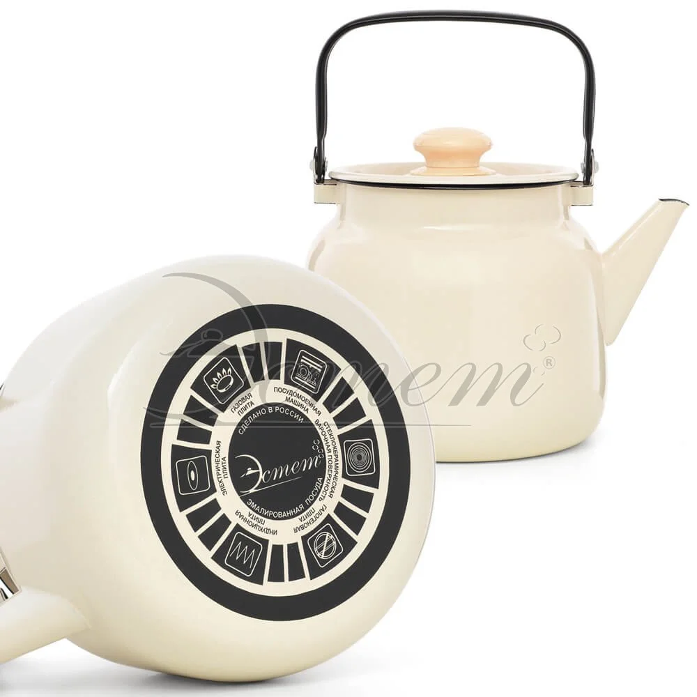 Чайник Эстет изготовлен из высококачественного стального проката и покрыта стеклокерамической эмалью. Внутри и снаружи - трехслойное глянцевое эмалированное покрытие. Эмалевое покрытие, являясь стекольной массой, не вызывает аллергию и надежно защищает пищу от контакта с металлом. Кроме того, такое покрытие долговечно, оно устойчиво к механическому воздействию, не царапается и не "сходит", а стальная основа практически не подвержена механической деформации, благодаря чему срок эксплуатации увеличивается. Крышка с эмалированным покрытием оснащена удобной ручкой. Подходит для всех типов плит, включая индукционные. Можно мыть в посудомоечной машине.