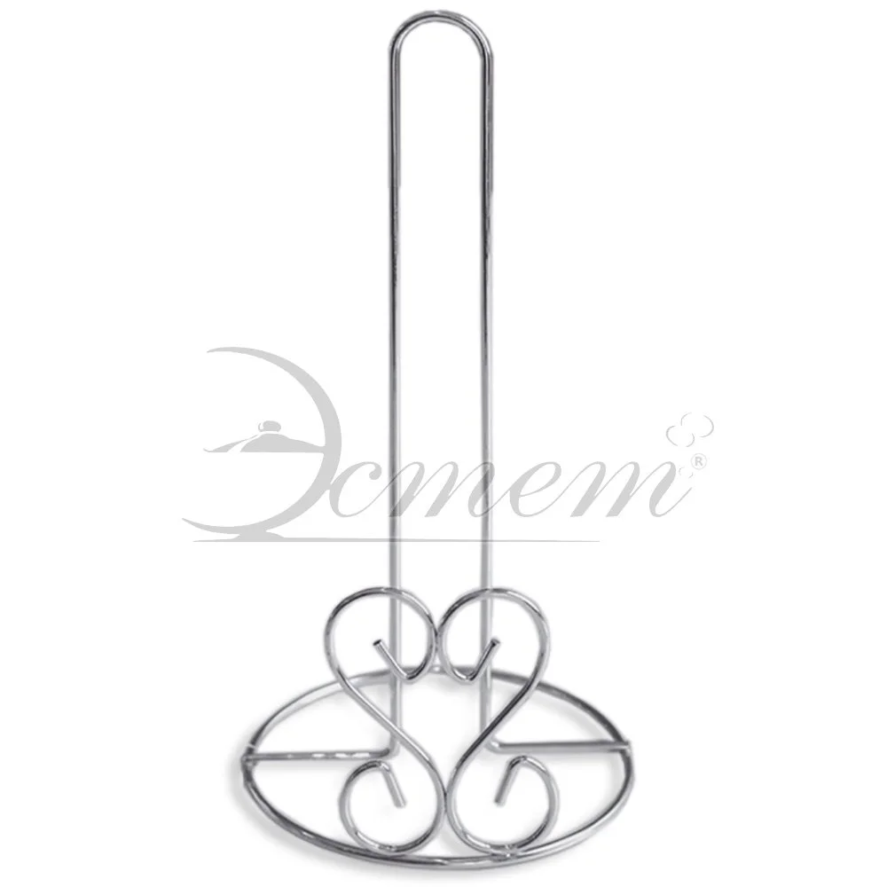 Подставка для бумажных полотенец выполнена из хромированного металла. Подставка имеет круглое устойчивое основание и украшена рельевным орнаментом. Подставка подходит для всех стандартных типов домашних бумажных полотенец в рулонах. За счет хромированного покрытия, изделие не будет ржаветь в условиях повышенной влажности, кроме того, гладкая поверхность покрытия обеспечит легкое мытье. Стильная подставка прекрасно впишется в интерьер современной кухни.