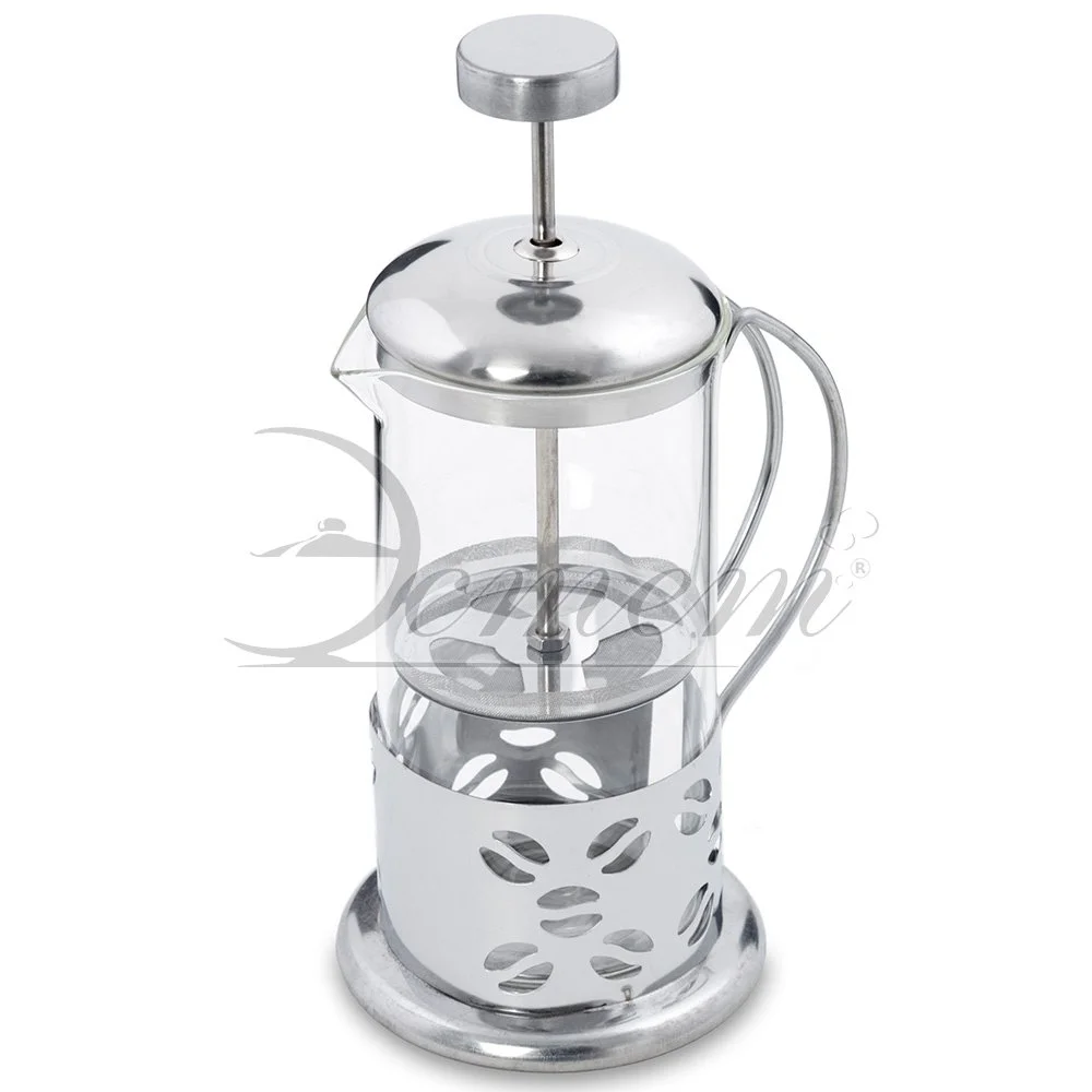 Френч-пресс изготовлен из высокотехнологичных материалов на современном оборудовании. Колба из высококачественного термостойкого боросиликатного стекла заключена в корпус из нержавеющей стали. Фильтр-поршень из нержавеющей стали выполнен по технологии "press-up" для обеспечения равномерной циркуляции воды в чайнике. Удобная, не нагревающаяся ручка также выполнена из качественной нержавеющей стали. Практичный и стильный дизайн полностью соответствует последним модным тенденциям в создании предметов бытовой техники. Френч-пресс позволит вам быстро и без усилий приготовить свежий ароматный кофе или чай. Подходит для мытья в посудомоечной машине. Не использовать чистящие и дезинфицирующие средства, содержащие хлор. Не подходит для использования на открытом огне.