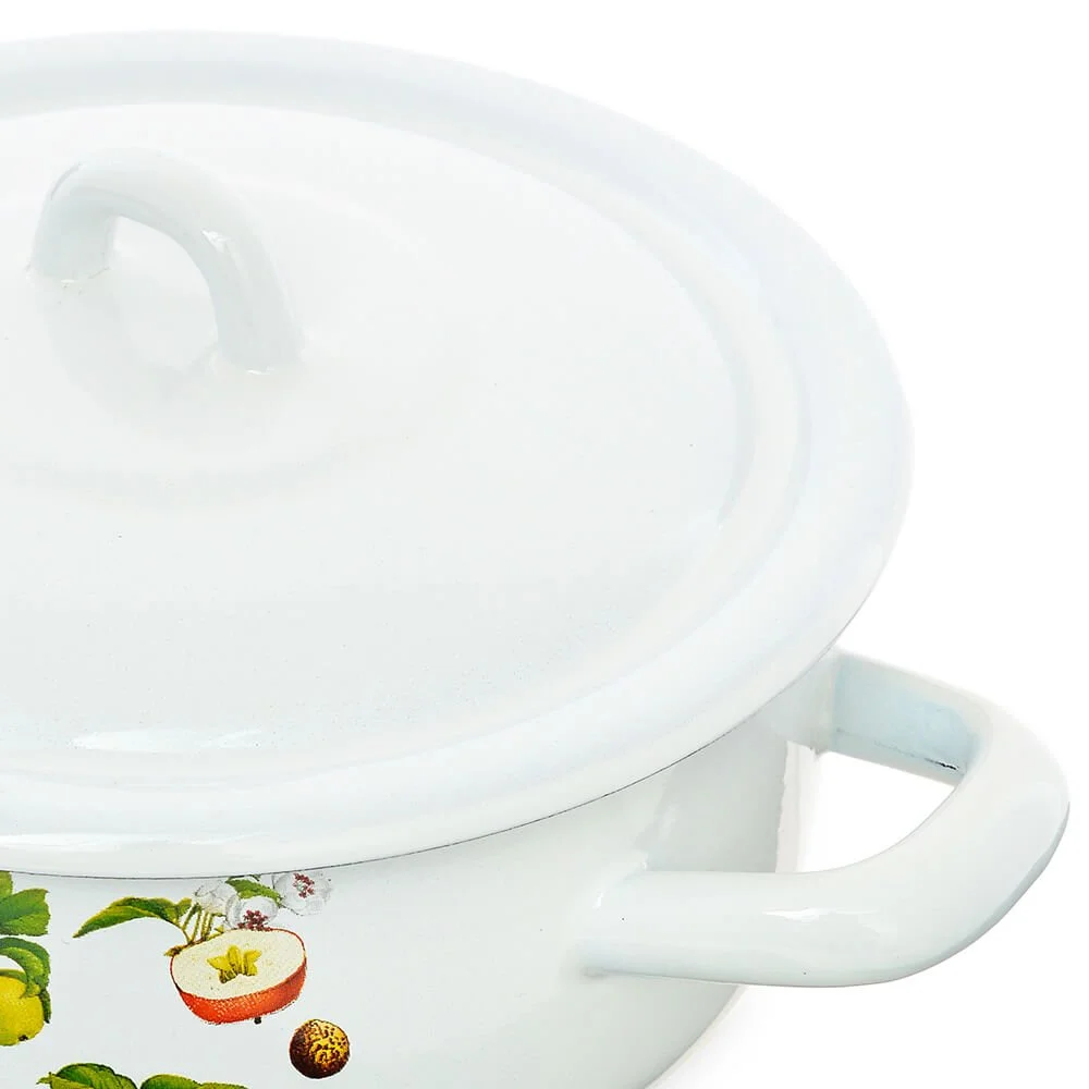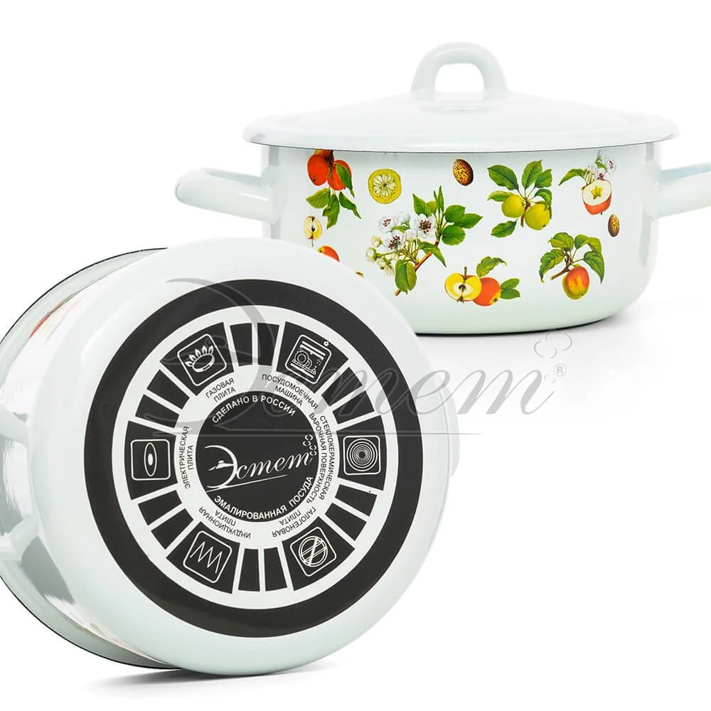 Кастрюля Эстет изготовлена из высококачественного стального проката и покрыта стеклокерамической эмалью. Внутри и снаружи - трехслойное глянцевое эмалированное покрытие. Эмалевое покрытие, являясь стекольной массой, не вызывает аллергию и надежно защищает пищу от контакта с металлом. Кроме того, такое покрытие долговечно, оно устойчиво к механическому воздействию, не царапается и не "сходит", а стальная основа практически не подвержена механической деформации, благодаря чему срок эксплуатации увеличивается. Крышка с эмалированным покрытием оснащена удобной ручкой. Она плотно прилегает к краю, сохраняя аромат блюд. Подходит для всех типов плит, включая индукционные. Можно мыть в посудомоечной машине.