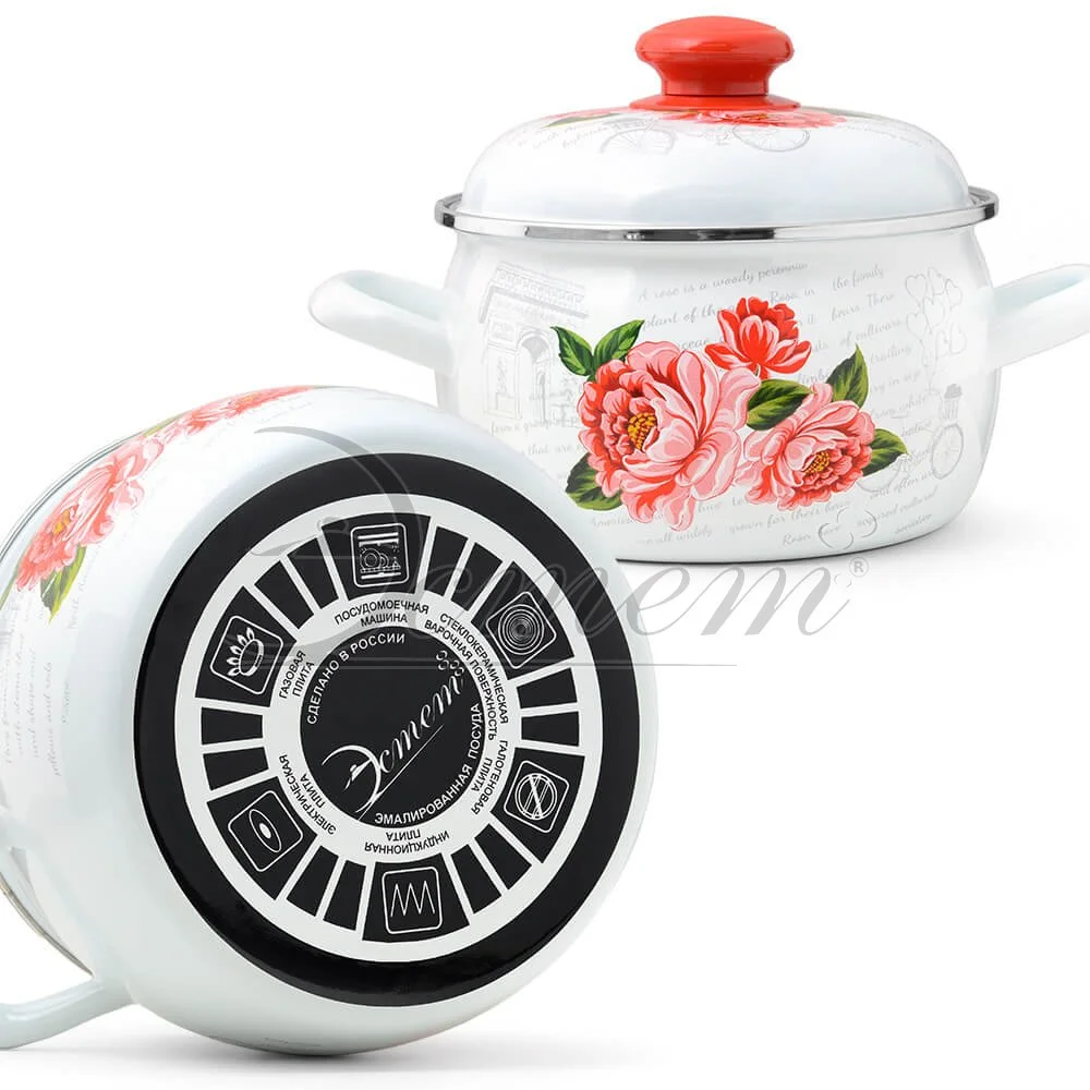 Кастрюля Эстет "Гардения" изготовлена из высококачественного стального проката и покрыта стеклокерамической эмалью. Внутри и снаружи - трехслойное глянцевое эмалированное покрытие. Эмалевое покрытие, являясь стекольной массой, не вызывает аллергию и надежно защищает пищу от контакта с металлом. Кроме того, такое покрытие долговечно, оно устойчиво к механическому воздействию, не царапается и не "сходит", а стальная основа практически не подвержена механической деформации, благодаря чему срок эксплуатации увеличивается. Крышка с эмалированным покрытием оснащена удобной ручкой, куполообразная форма крышки минимизирует выкипание в процессе приготовления пищи. Она плотно прилегает к краю, сохраняя аромат блюд. Подходит для всех типов плит, включая индукционные. Можно мыть в посудомоечной машине.
