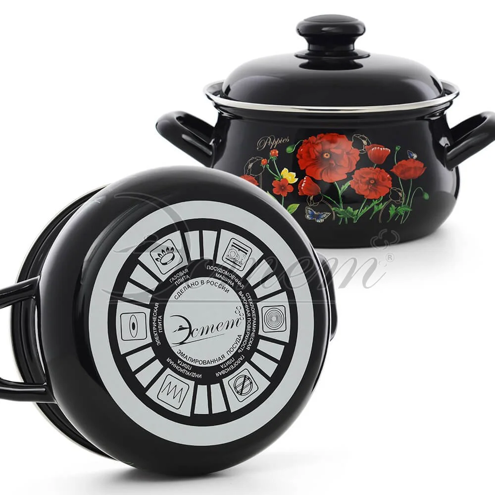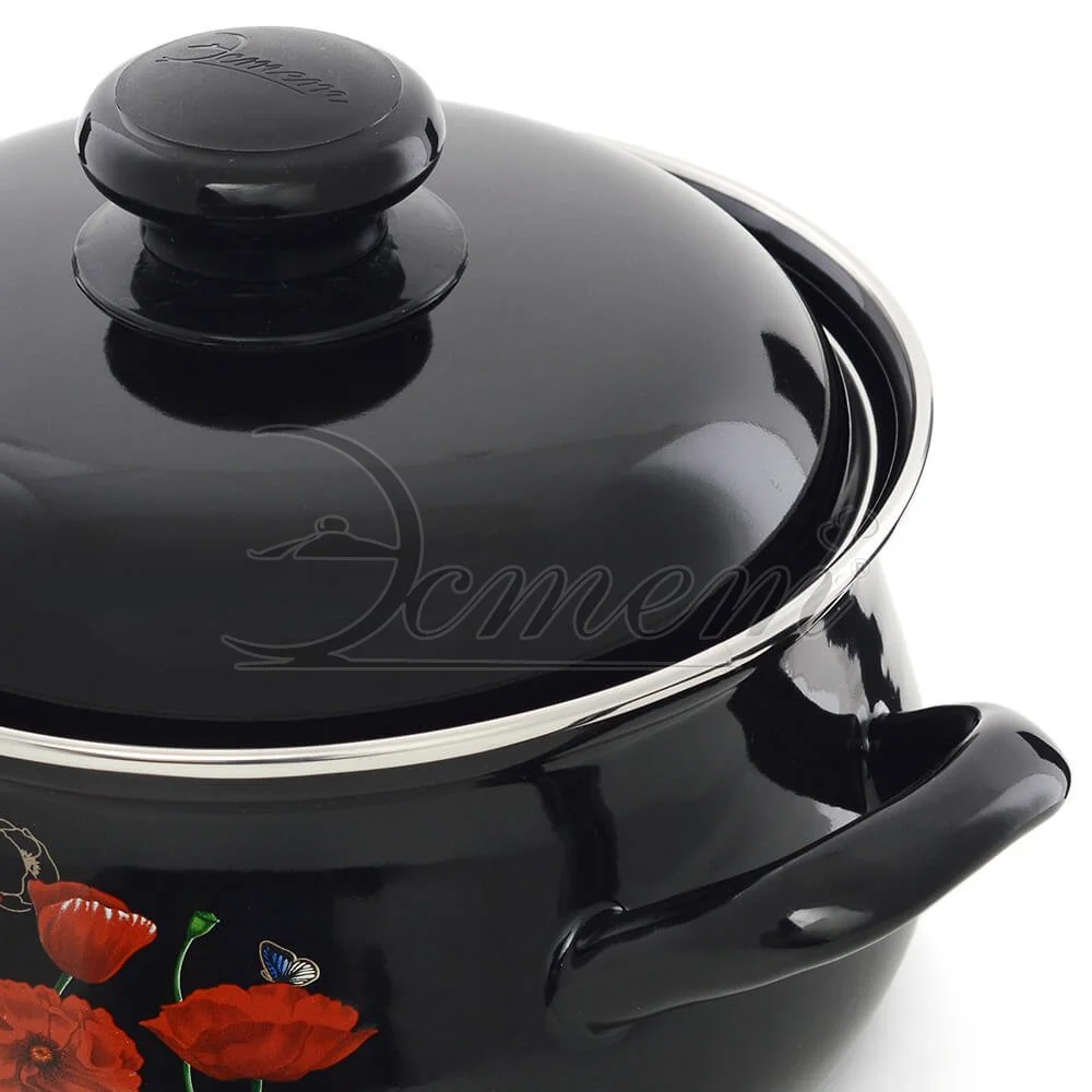 Кастрюля Эстет "Красные маки" изготовлена из высококачественного стального проката и покрыта стеклокерамической эмалью. Внутри и снаружи - трехслойное глянцевое эмалированное покрытие. Эмалевое покрытие, являясь стекольной массой, не вызывает аллергию и надежно защищает пищу от контакта с металлом. Кроме того, такое покрытие долговечно, оно устойчиво к механическому воздействию, не царапается и не "сходит", а стальная основа практически не подвержена механической деформации, благодаря чему срок эксплуатации увеличивается. Крышка с эмалированным покрытием оснащена удобной ручкой, куполообразная форма крышки минимизирует выкипание в процессе приготовления пищи. Она плотно прилегает к краю, сохраняя аромат блюд. Подходит для всех типов плит, включая индукционные. Можно мыть в посудомоечной машине