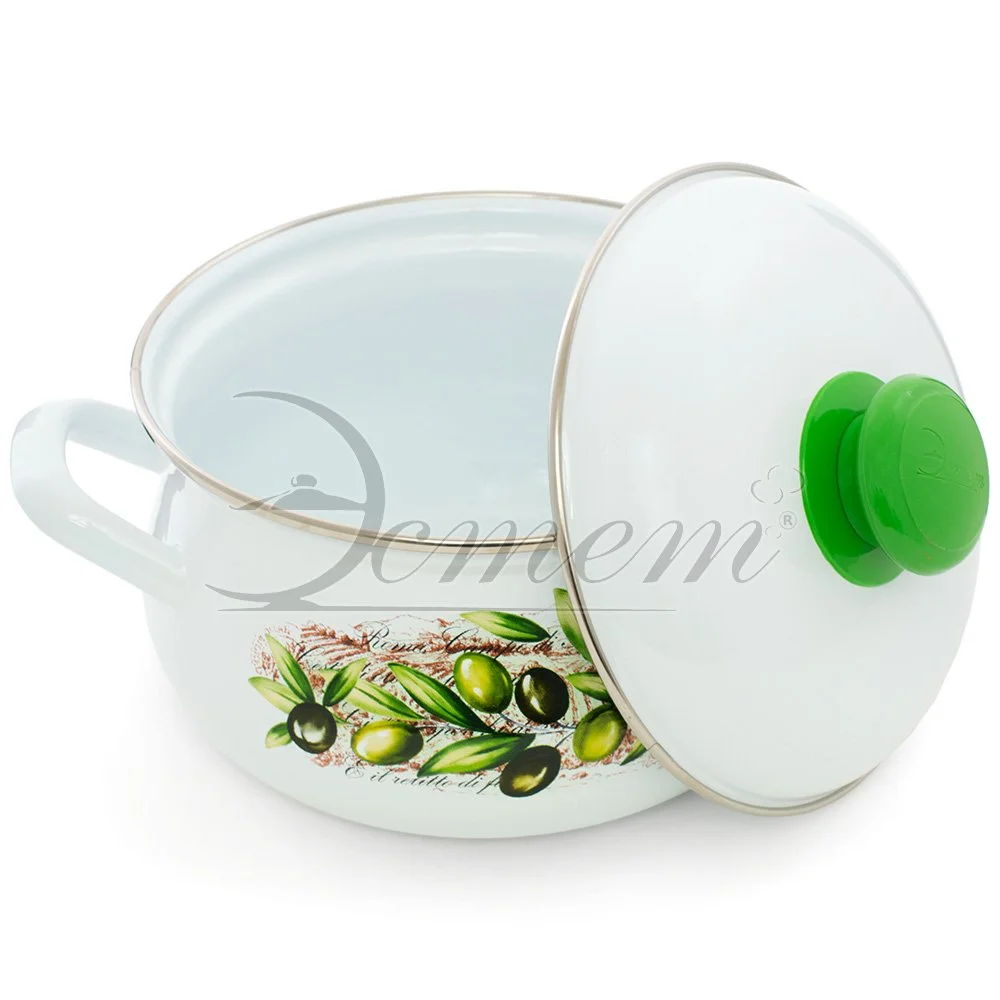 Кастрюля Эстет "Оливы Тосканы" изготовлена из высококачественного стального проката и покрыта стеклокерамической эмалью. Внутри и снаружи - трехслойное глянцевое эмалированное покрытие. Эмалевое покрытие, являясь стекольной массой, не вызывает аллергию и надежно защищает пищу от контакта с металлом. Кроме того, такое покрытие долговечно, оно устойчиво к механическому воздействию, не царапается и не "сходит", а стальная основа практически не подвержена механической деформации, благодаря чему срок эксплуатации увеличивается. Крышка с эмалированным покрытием оснащена удобной ручкой, куполообразная форма крышки минимизирует выкипание в процессе приготовления пищи. Она плотно прилегает к краю, сохраняя аромат блюд. Подходит для всех типов плит, включая индукционные. Можно мыть в посудомоечной машине.
