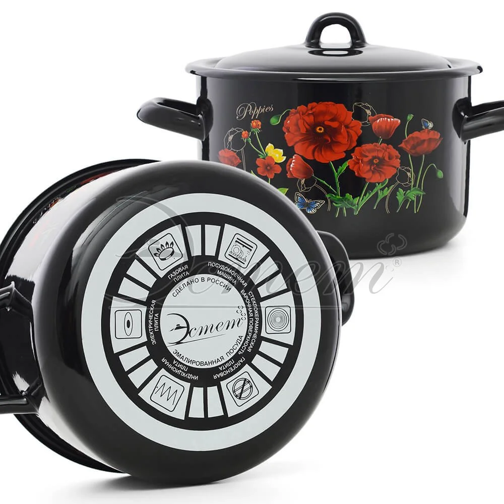 Кастрюля 2,9 л Эстет Красные маки ЭТ-72802 цилиндрическая