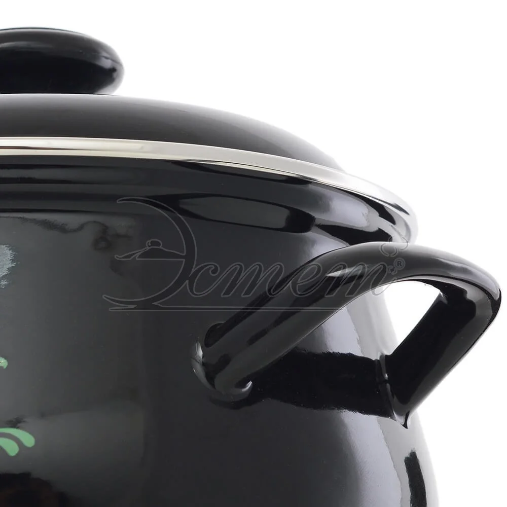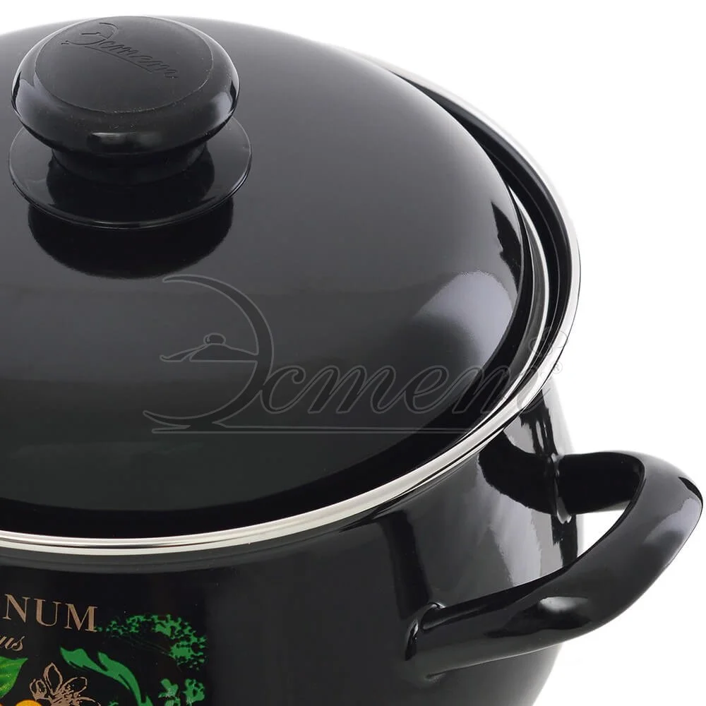 стекольной массой, не вызывает аллергию и надежно защищает пищу от контакта с металлом. Кроме того, такое покрытие долговечно, оно устойчиво к механическому воздействию, не царапается и не "сходит", а стальная основа практически не подвержена механической деформации, благодаря чему срок эксплуатации увеличивается. Крышка с эмалированным покрытием оснащена удобной ручкой, куполообразная форма крышки минимизирует выкипание в процессе приготовления пищи. Она плотно прилегает к краю, сохраняя аромат блюд. Подходит для всех типов плит, включая индукционные. Можно мыть в посудомоечной машине.