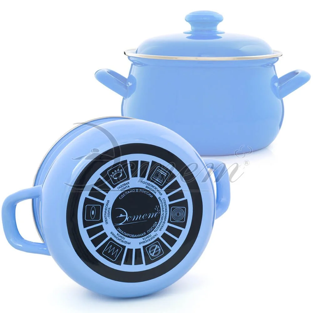 Кастрюля Эстет "Голубая" изготовлена из высококачественного стального проката и покрыта стеклокерамической эмалью. Внутри и снаружи - трехслойное глянцевое эмалированное покрытие. Эмалевое покрытие, являясь стекольной массой, не вызывает аллергию и надежно защищает пищу от контакта с металлом. Кроме того, такое покрытие долговечно, оно устойчиво к механическому воздействию, не царапается и не "сходит", а стальная основа практически не подвержена механической деформации, благодаря чему срок эксплуатации увеличивается. Крышка с эмалированным покрытием оснащена удобной ручкой, куполообразная форма крышки минимизирует выкипание в процессе приготовления пищи. Она плотно прилегает к краю, сохраняя аромат блюд. Подходит для всех типов плит, включая индукционные. Можно мыть в посудомоечной машине.