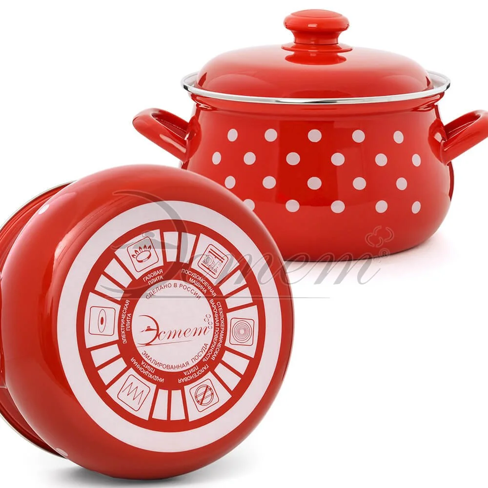 Кастрюля Эстет "Горошинки на красном" изготовлена из высококачественного стального проката и покрыта стеклокерамической эмалью. Внутри и снаружи - трехслойное глянцевое эмалированное покрытие. Эмалевое покрытие, являясь стекольной массой, не вызывает аллергию и надежно защищает пищу от контакта с металлом. Кроме того, такое покрытие долговечно, оно устойчиво к механическому воздействию, не царапается и не "сходит", а стальная основа практически не подвержена механической деформации, благодаря чему срок эксплуатации увеличивается. Крышка с эмалированным покрытием оснащена удобной ручкой, куполообразная форма крышки минимизирует выкипание в процессе приготовления пищи. Она плотно прилегает к краю, сохраняя аромат блюд. Подходит для всех типов плит, включая индукционные. Можно мыть в посудомоечной машине.
