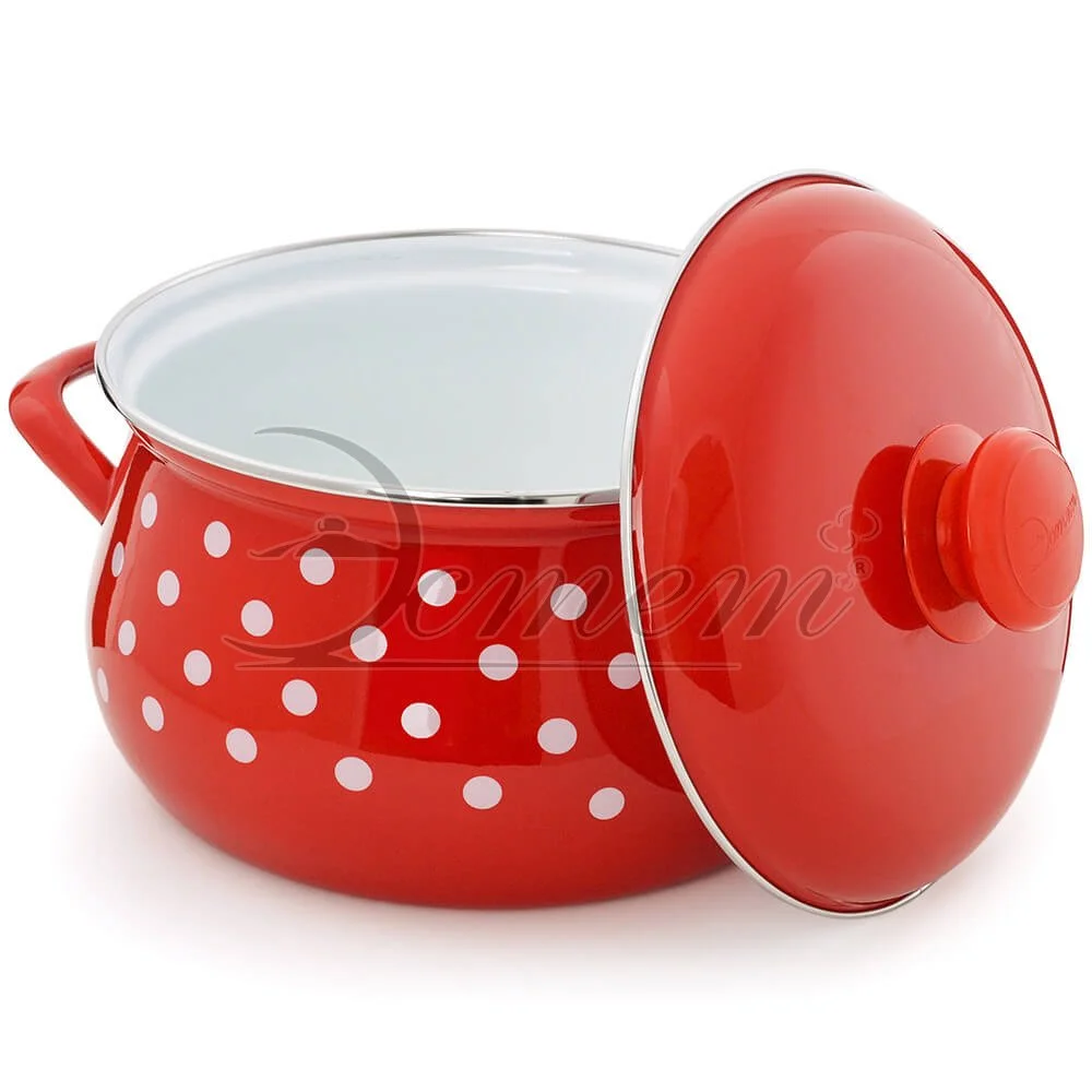 Кастрюля 3,0 л Эстет Горошинки на красном ЭТ-72402 грушевидная
