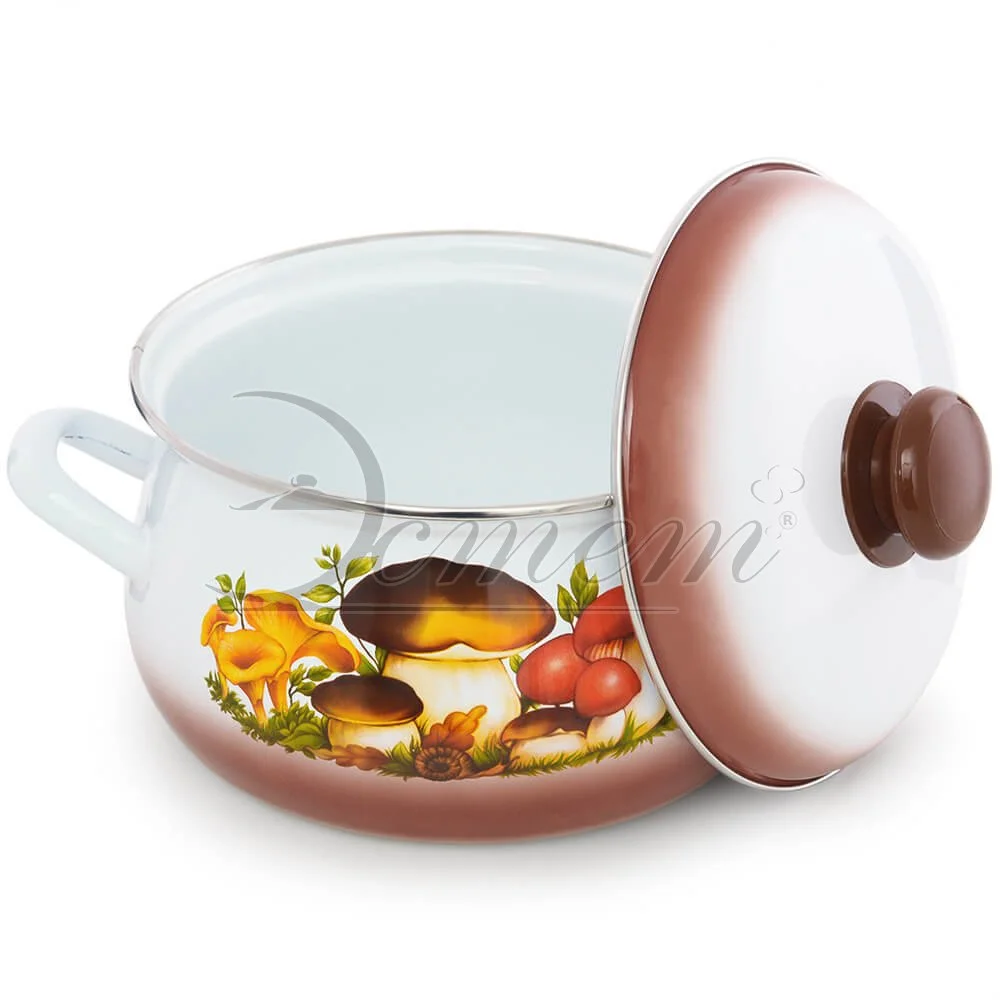 Кастрюля Эстет "Грибы" изготовлена из высококачественного стального проката и покрыта стеклокерамической эмалью. Внутри и снаружи - трехслойное глянцевое эмалированное покрытие. Эмалевое покрытие, являясь стекольной массой, не вызывает аллергию и надежно защищает пищу от контакта с металлом. Кроме того, такое покрытие долговечно, оно устойчиво к механическому воздействию, не царапается и не "сходит", а стальная основа практически не подвержена механической деформации, благодаря чему срок эксплуатации увеличивается. Крышка с эмалированным покрытием оснащена удобной ручкой. Она плотно прилегает к краю, сохраняя аромат блюд. Подходит для всех типов плит, включая индукционные. Можно мыть в посудомоечной машине.
