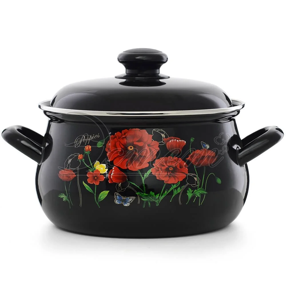 Кастрюля Эстет "Красные маки" изготовлена из высококачественного стального проката и покрыта стеклокерамической эмалью. Внутри и снаружи - трехслойное глянцевое эмалированное покрытие. Эмалевое покрытие, являясь стекольной массой, не вызывает аллергию и надежно защищает пищу от контакта с металлом. Кроме того, такое покрытие долговечно, оно устойчиво к механическому воздействию, не царапается и не "сходит", а стальная основа практически не подвержена механической деформации, благодаря чему срок эксплуатации увеличивается. Крышка с эмалированным покрытием оснащена удобной ручкой, куполообразная форма крышки минимизирует выкипание в процессе приготовления пищи. Она плотно прилегает к краю, сохраняя аромат блюд. Подходит для всех типов плит, включая индукционные. Можно мыть в посудомоечной машине