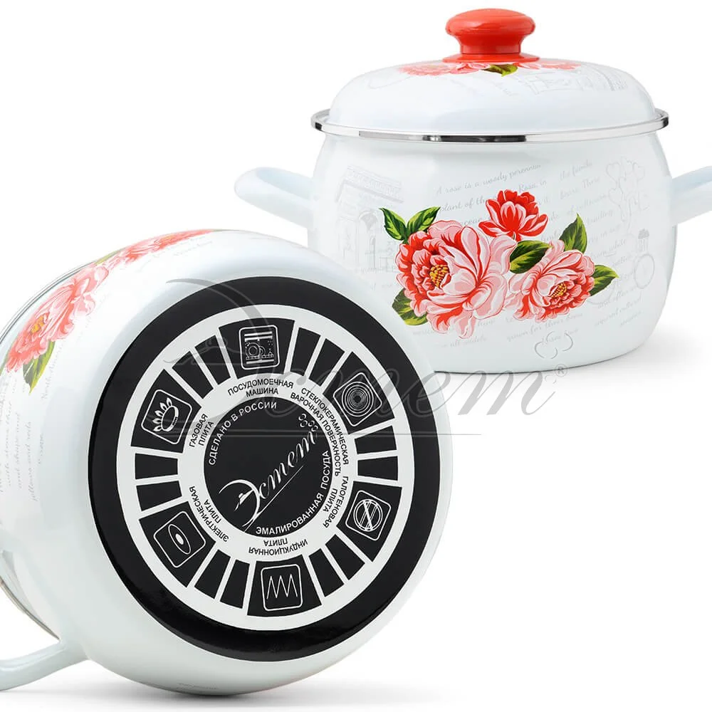 Кастрюля Эстет "Гардения" изготовлена из высококачественного стального проката и покрыта стеклокерамической эмалью. Внутри и снаружи - трехслойное глянцевое эмалированное покрытие. Эмалевое покрытие, являясь стекольной массой, не вызывает аллергию и надежно защищает пищу от контакта с металлом. Кроме того, такое покрытие долговечно, оно устойчиво к механическому воздействию, не царапается и не "сходит", а стальная основа практически не подвержена механической деформации, благодаря чему срок эксплуатации увеличивается. Крышка с эмалированным покрытием оснащена удобной ручкой, куполообразная форма крышки минимизирует выкипание в процессе приготовления пищи. Она плотно прилегает к краю, сохраняя аромат блюд. Подходит для всех типов плит, включая индукционные. Можно мыть в посудомоечной машине.