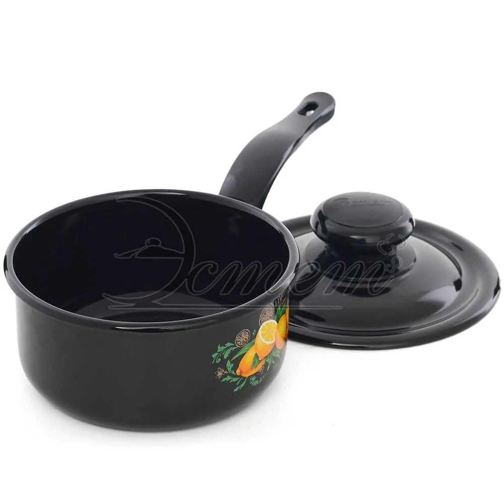 Ковш Эстет изготовлен из высококачественного стального проката и покрыта стеклокерамической эмалью. Внутри и снаружи - трехслойное глянцевое эмалированное покрытие. Эмалевое покрытие, являясь стекольной массой, не вызывает аллергию и надежно защищает пищу от контакта с металлом. Кроме того, такое покрытие долговечно, оно устойчиво к механическому воздействию, не царапается и не "сходит", а стальная основа практически не подвержена механической деформации, благодаря чему срок эксплуатации увеличивается. Крышка с эмалированным покрытием оснащена удобной ручкой. Подходит для всех типов плит, включая индукционные. Можно мыть в посудомоечной машине.