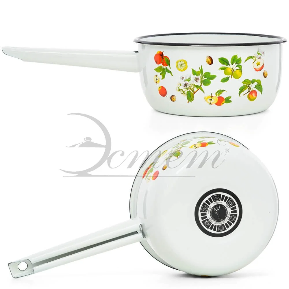 Ковш Эстет изготовлен из высококачественного стального проката и покрыта стеклокерамической эмалью. Внутри и снаружи - трехслойное глянцевое эмалированное покрытие. Эмалевое покрытие, являясь стекольной массой, не вызывает аллергию и надежно защищает пищу от контакта с металлом. Кроме того, такое покрытие долговечно, оно устойчиво к механическому воздействию, не царапается и не "сходит", а стальная основа практически не подвержена механической деформации, благодаря чему срок эксплуатации увеличивается. Подходит для всех типов плит, включая индукционные. Можно мыть в посудомоечной машине.