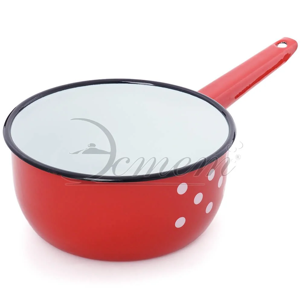 Ковш Эстет изготовлен из высококачественного стального проката и покрыта стеклокерамической эмалью. Внутри и снаружи - трехслойное глянцевое эмалированное покрытие. Эмалевое покрытие, являясь стекольной массой, не вызывает аллергию и надежно защищает пищу от контакта с металлом. Кроме того, такое покрытие долговечно, оно устойчиво к механическому воздействию, не царапается и не "сходит", а стальная основа практически не подвержена механической деформации, благодаря чему срок эксплуатации увеличивается. Подходит для всех типов плит, включая индукционные. Можно мыть в посудомоечной машине.