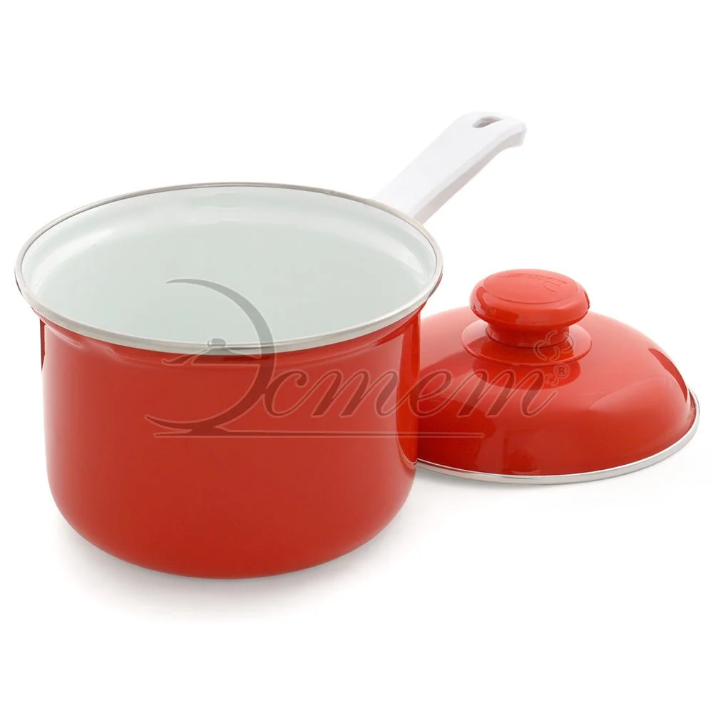 Ковш Эстет изготовлен из высококачественного стального проката и покрыта стеклокерамической эмалью. Внутри и снаружи - трехслойное глянцевое эмалированное покрытие. Эмалевое покрытие, являясь стекольной массой, не вызывает аллергию и надежно защищает пищу от контакта с металлом. Кроме того, такое покрытие долговечно, оно устойчиво к механическому воздействию, не царапается и не "сходит", а стальная основа практически не подвержена механической деформации, благодаря чему срок эксплуатации увеличивается. Крышка с эмалированным покрытием оснащена удобной ручкой. Подходит для всех типов плит, включая индукционные. Можно мыть в посудомоечной машине.