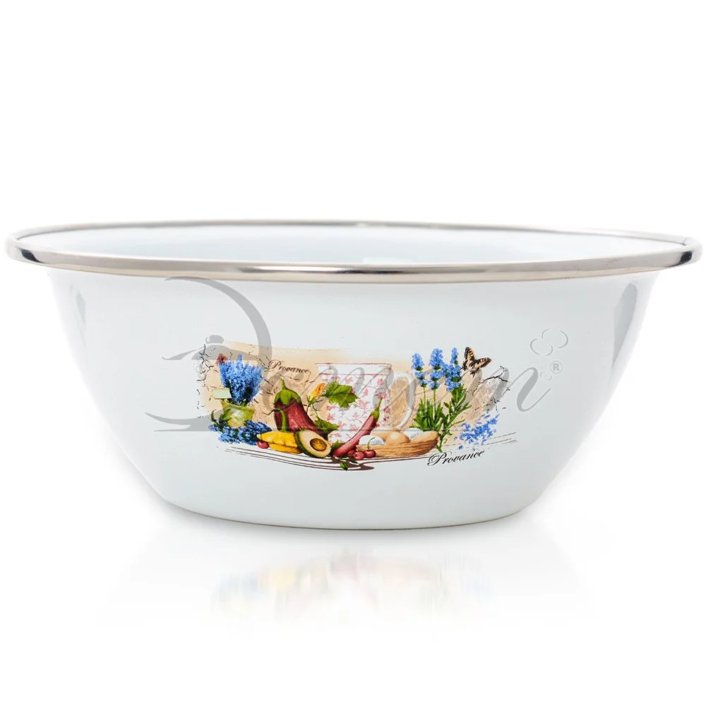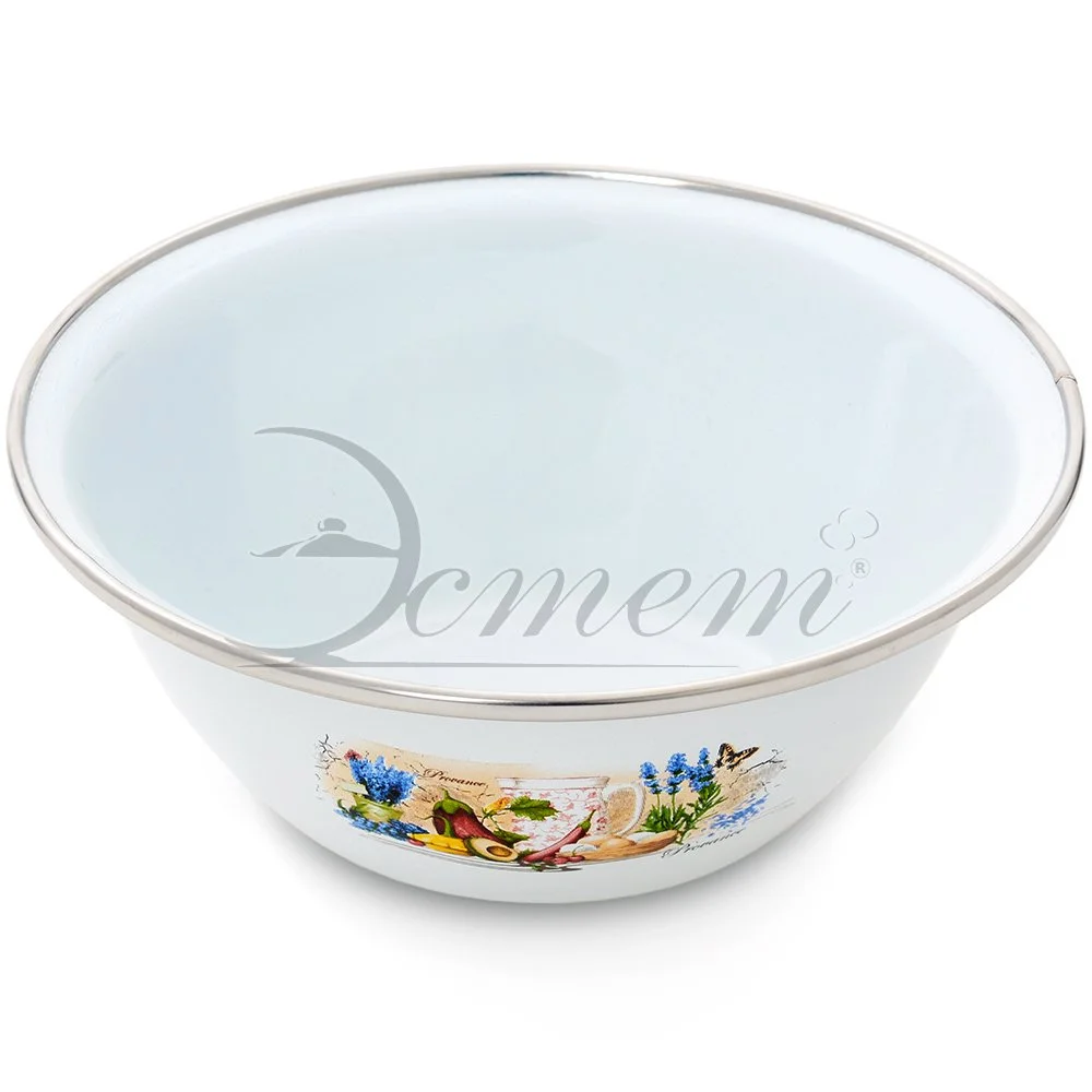 Миска изготовлена из высококачественной стали с эмалированным покрытием. Такое покрытие устойчиво к перепадам температуры и механическим воздействиям, а так же к воздействиям окружающей среды. На внешней стороне имеется яркий принт. Используется для сервировки и приготовления салатов и других блюд. Такая миска пригодится на любой кухне и поможет вам в приготовлении пищи. Подходит для всех типов плит, включая индукционные. Можно мыть в посудомоечной машине.
