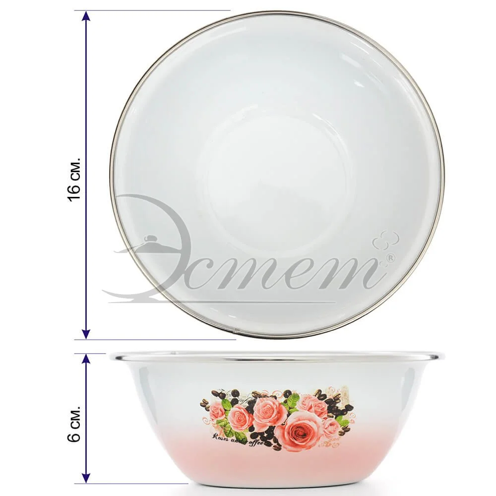 Миска изготовлена из высококачественной стали с эмалированным покрытием. Такое покрытие устойчиво к перепадам температуры и механическим воздействиям, а так же к воздействиям окружающей среды. На внешней стороне имеется яркий принт. Используется для сервировки и приготовления салатов и других блюд. Такая миска пригодится на любой кухне и поможет вам в приготовлении пищи. Подходит для всех типов плит, включая индукционные. Можно мыть в посудомоечной машине.