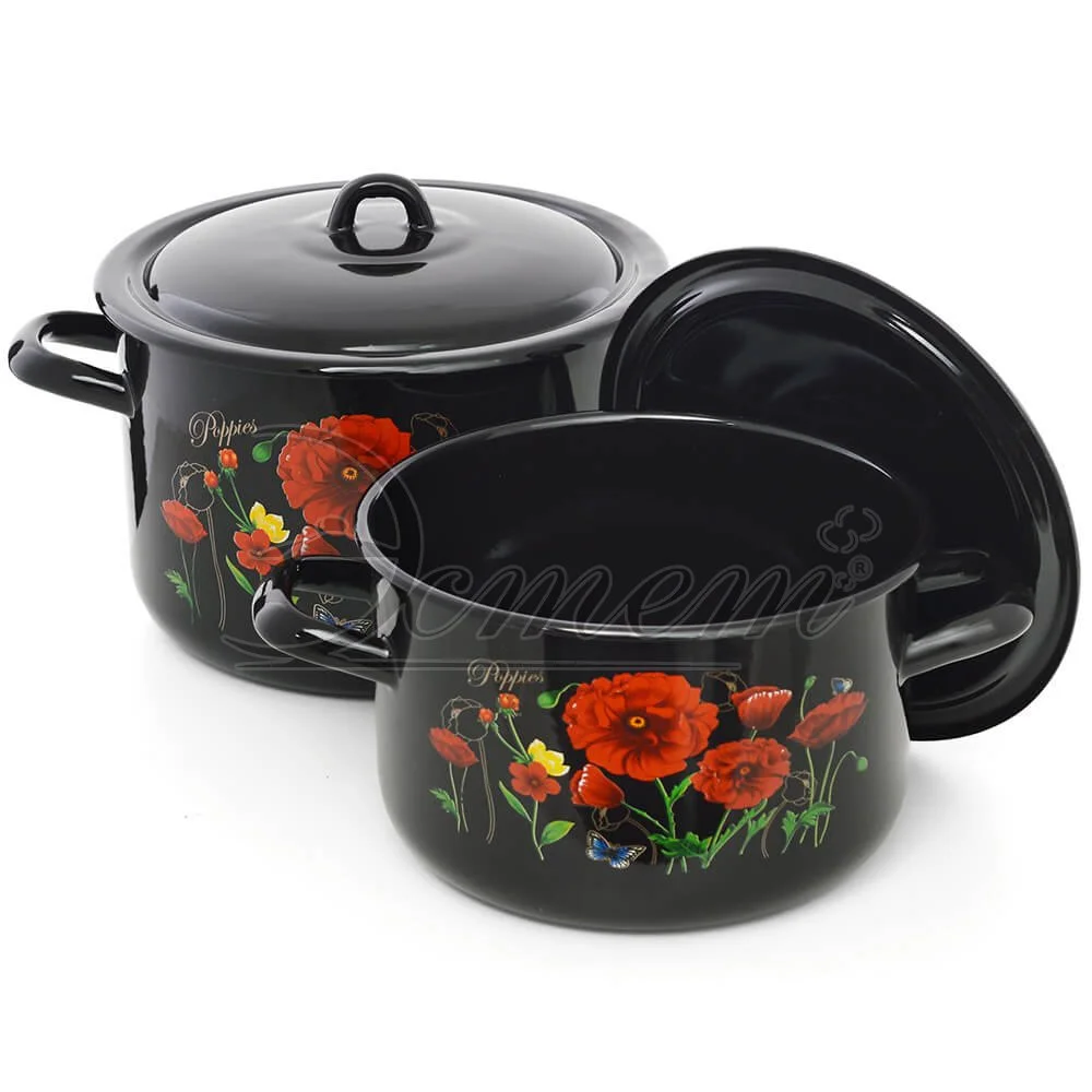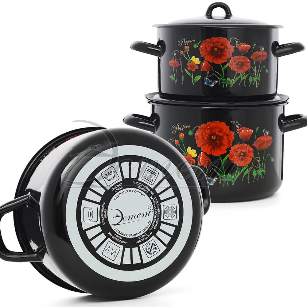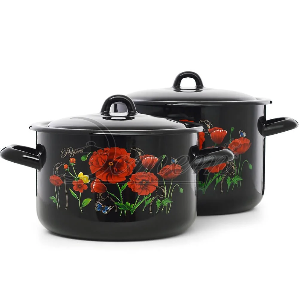 Набор посуды ЭТ-72811 "Красные маки" цилиндрический 2,9+4,3 л 4 пр *1 – это отличное сочетание современного подхода к дизайну и классических, проверенных материалов. В частности, эмалированная сталь – один из самых популярных и хорошо зарекомендовавших себя материалов, из которого производят наборы посуды. Он безопасен, практичен, неприхотлив в уходе и достаточно красив, чтобы изделие легко вписалось в интерьер и хорошо дополнило уже имеющийся комплект принадлежностей.