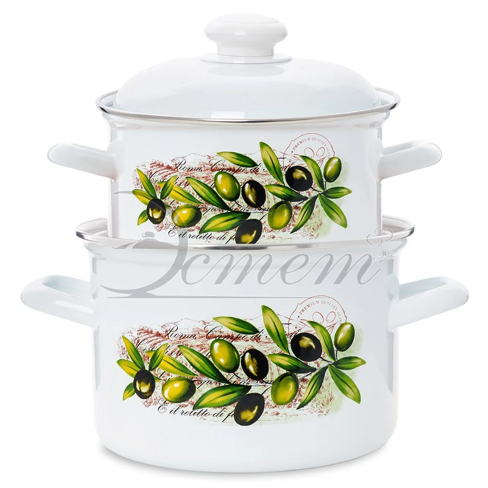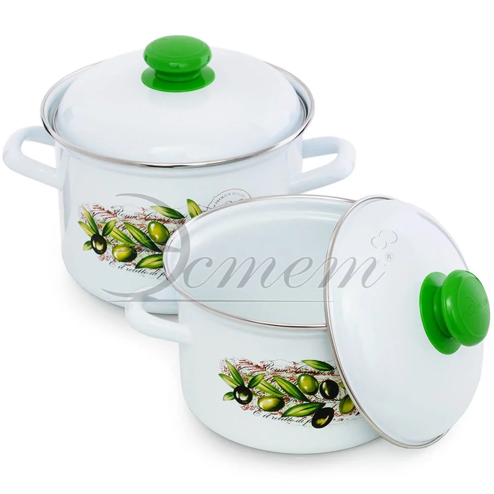 Набор посуды Эстет изготовлен из высококачественного стального проката и покрыта стеклокерамической эмалью. Внутри и снаружи - трехслойное глянцевое эмалированное покрытие. Эмалевое покрытие, являясь стекольной массой, не вызывает аллергию и надежно защищает пищу от контакта с металлом. Кроме того, такое покрытие долговечно, оно устойчиво к механическому воздействию, не царапается и не "сходит", а стальная основа практически не подвержена механической деформации, благодаря чему срок эксплуатации увеличивается. Крышка с эмалированным покрытием оснащена удобной ручкой. Она плотно прилегает к краю, сохраняя аромат блюд. Подходит для всех типов плит, включая индукционные. Можно мыть в посудомоечной машине.