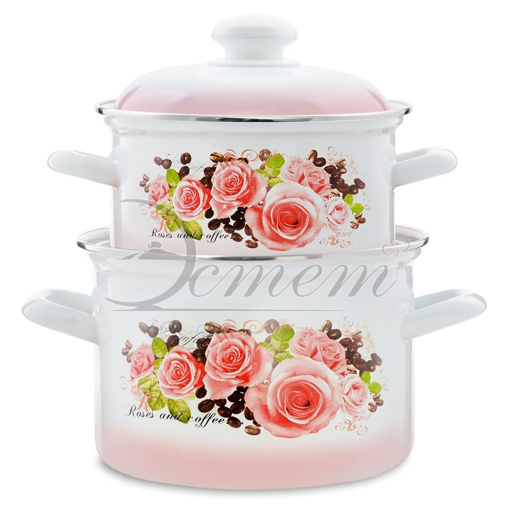Набор посуды Эстет изготовлен из высококачественного стального проката и покрыта стеклокерамической эмалью. Внутри и снаружи - трехслойное глянцевое эмалированное покрытие. Эмалевое покрытие, являясь стекольной массой, не вызывает аллергию и надежно защищает пищу от контакта с металлом. Кроме того, такое покрытие долговечно, оно устойчиво к механическому воздействию, не царапается и не "сходит", а стальная основа практически не подвержена механической деформации, благодаря чему срок эксплуатации увеличивается. Крышка с эмалированным покрытием оснащена удобной ручкой. Она плотно прилегает к краю, сохраняя аромат блюд. Подходит для всех типов плит, включая индукционные. Можно мыть в посудомоечной машине.